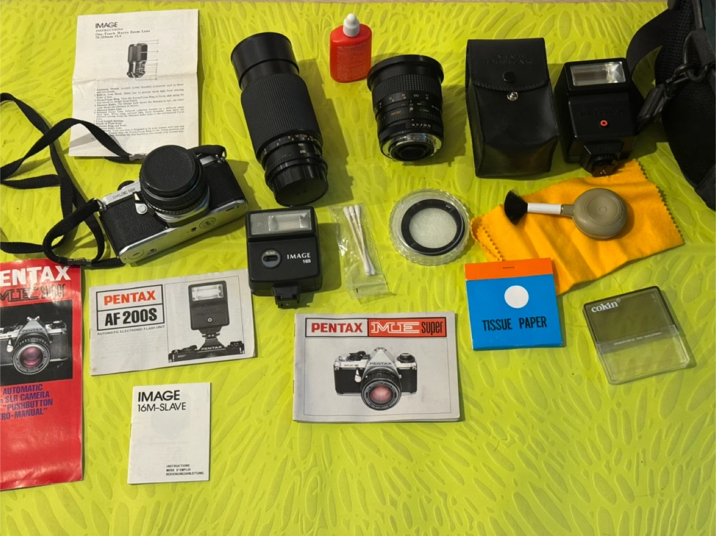 Selling a Lowepro camera bag that comes with a Pentax camera and a variety of accessories! The bag is in good condition and ready to carry your photography gear. Included are lenses, flashes, and other useful items to enhance your photography experience. Perfect for photography enthusiasts!