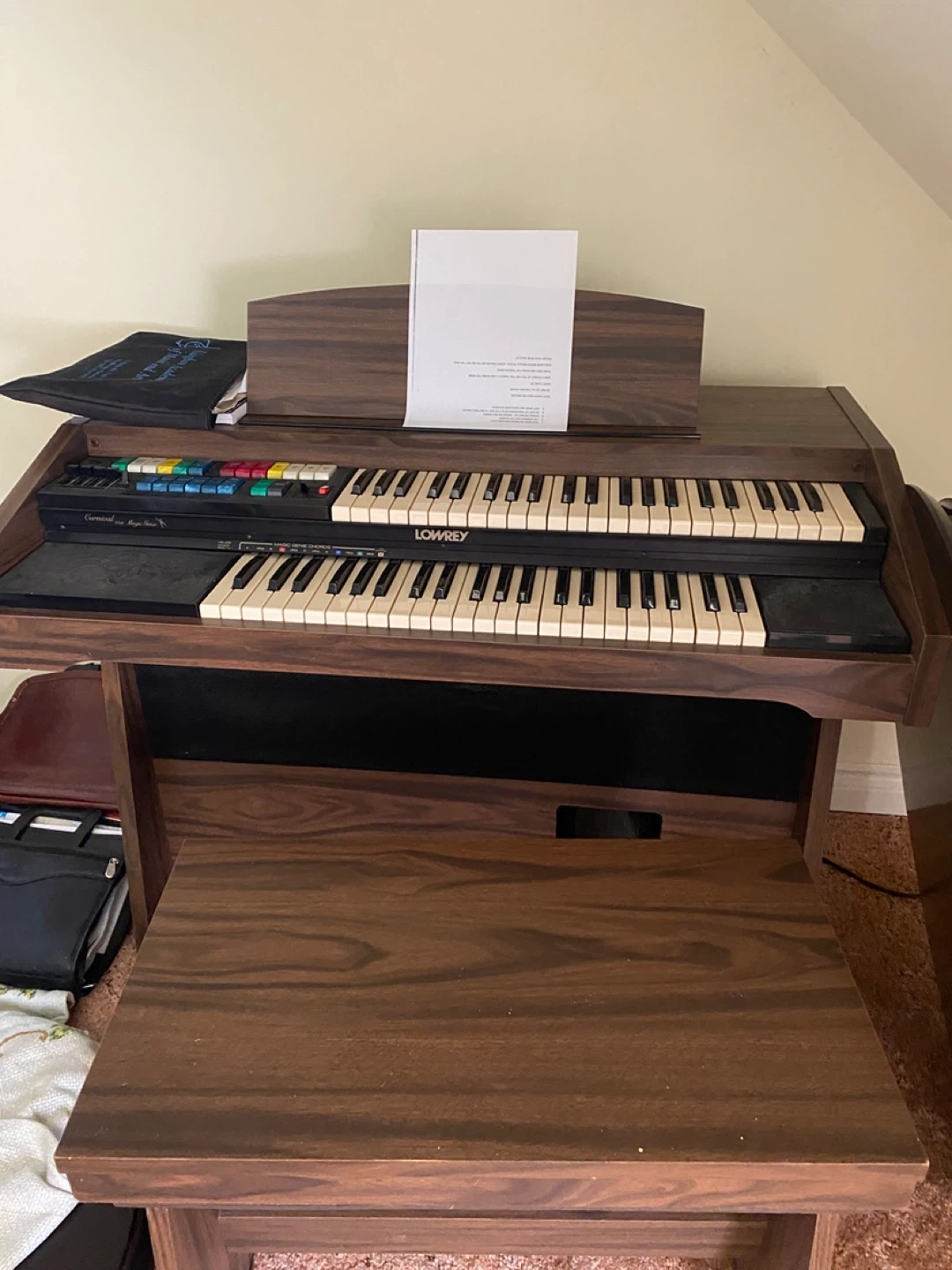 Selling a Lowrey Carnival with Magic Genie Series organ. It's in good condition and ready for a new home. Perfect for anyone looking to explore the world of music!