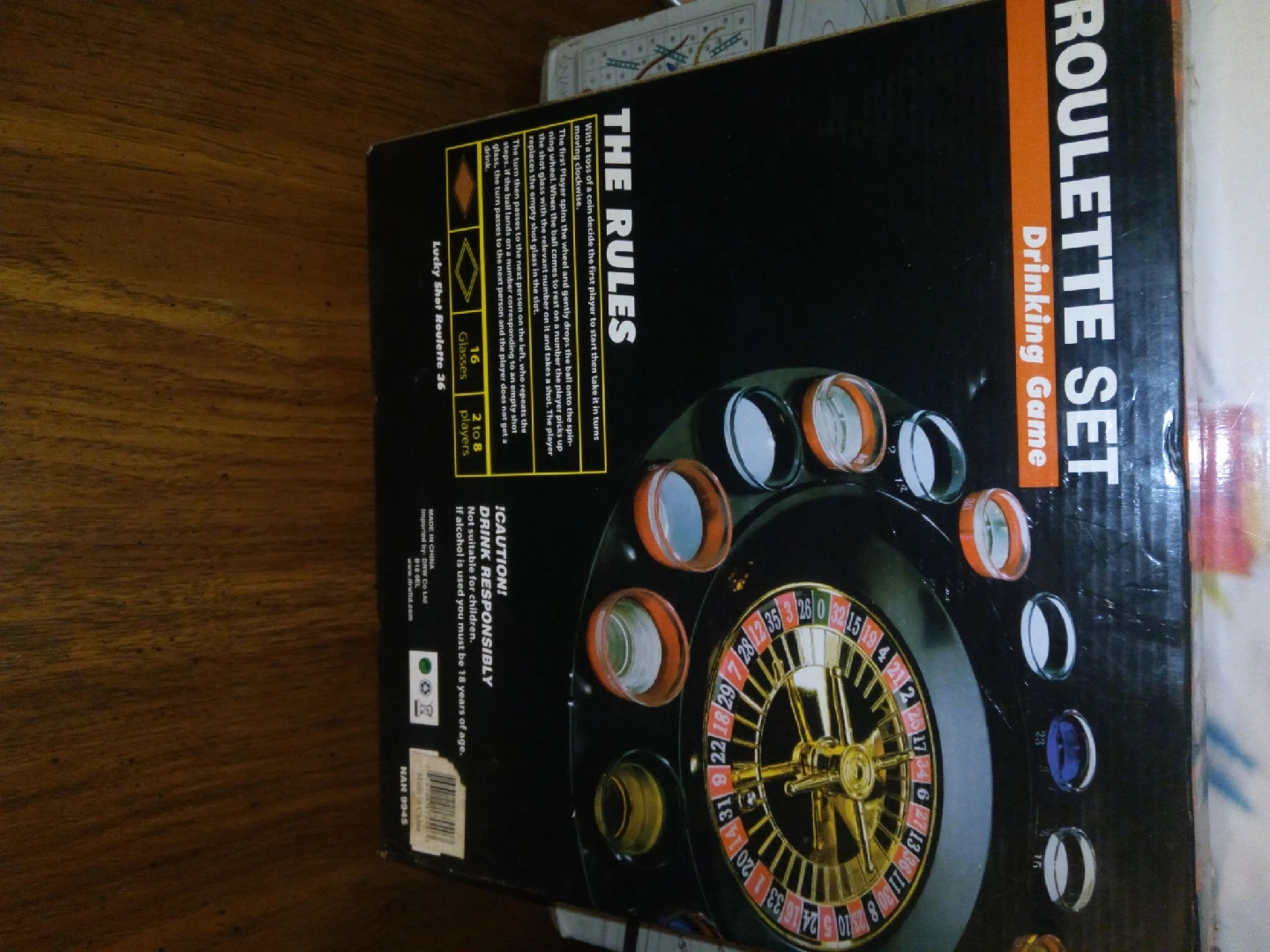 Selling a Lucky Shot Roulette drinking game! It's a fun game for 2-8 players. Drink responsibly!