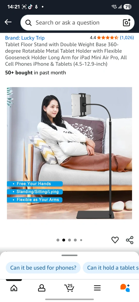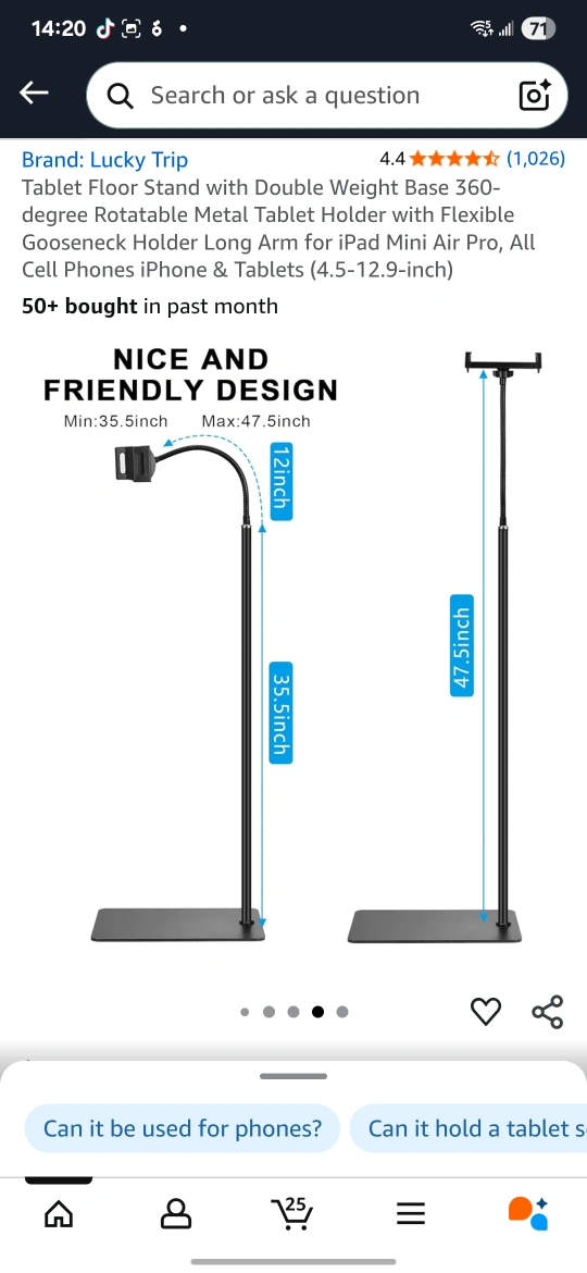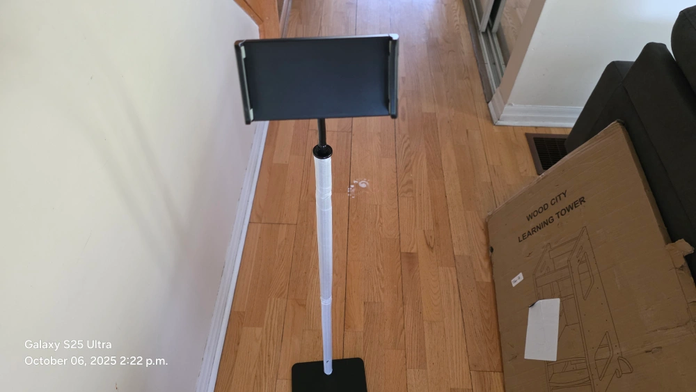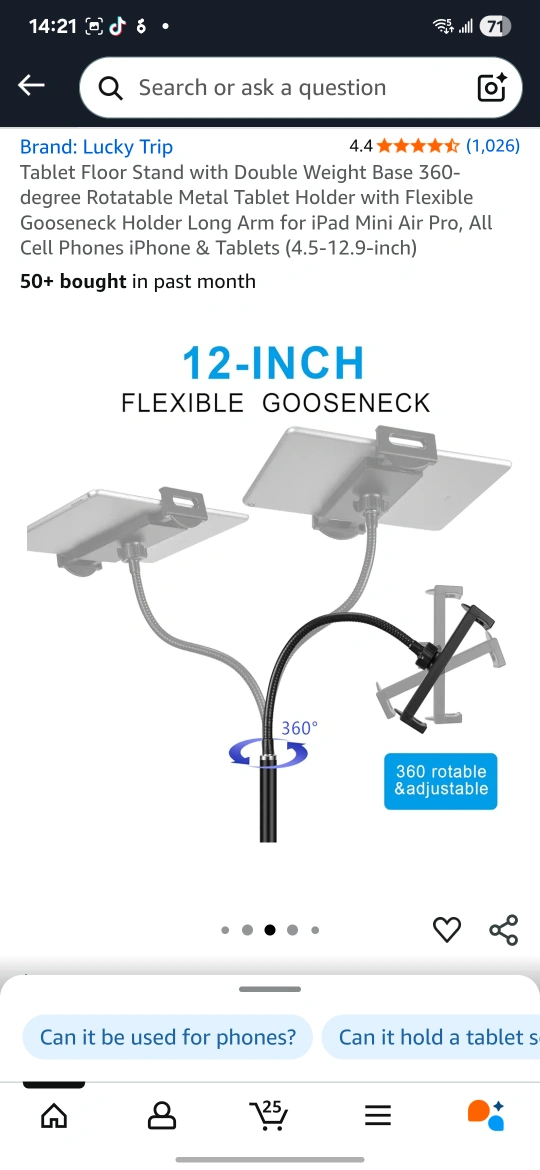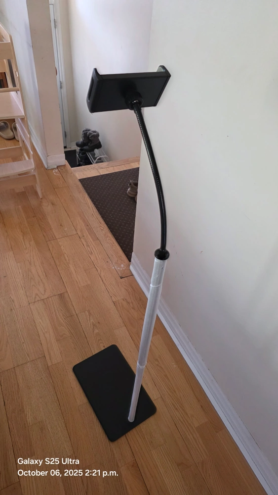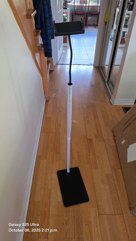 Selling a Lucky Trip tablet floor stand! It has a double weight base and a 360-degree rotatable metal tablet holder. The gooseneck holder has a long arm and is suitable for iPad Mini Air Pro and cell phones (4.5-12.9-inch). It's a flexible stand that can be adjusted as needed