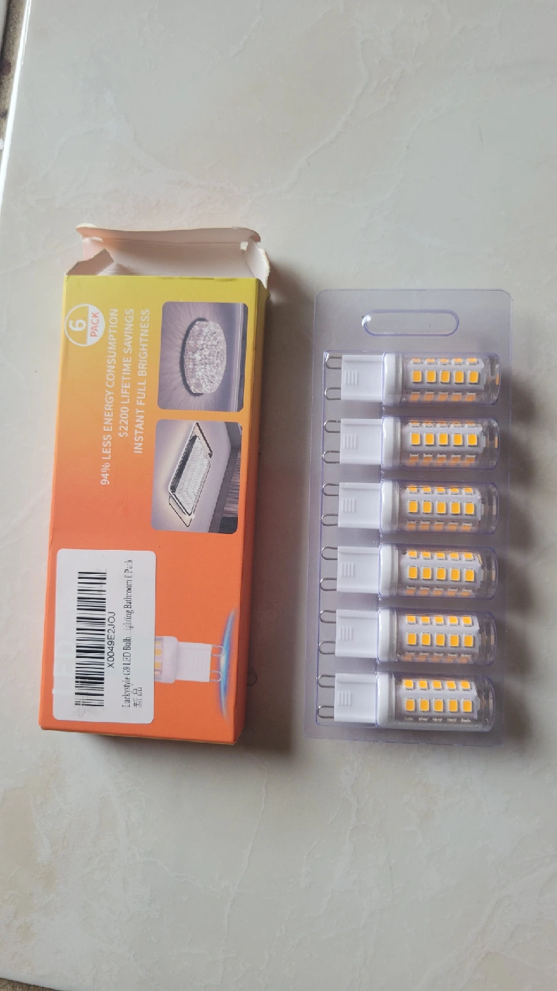 Selling a brand new pack of Luckystyle G9 LED bulbs! This pack includes 6 bulbs, perfect for lighting up your bathroom or any other space. They offer 94% less energy consumption and promise instant full brightness. Save money with $2200 lifetime savings!
