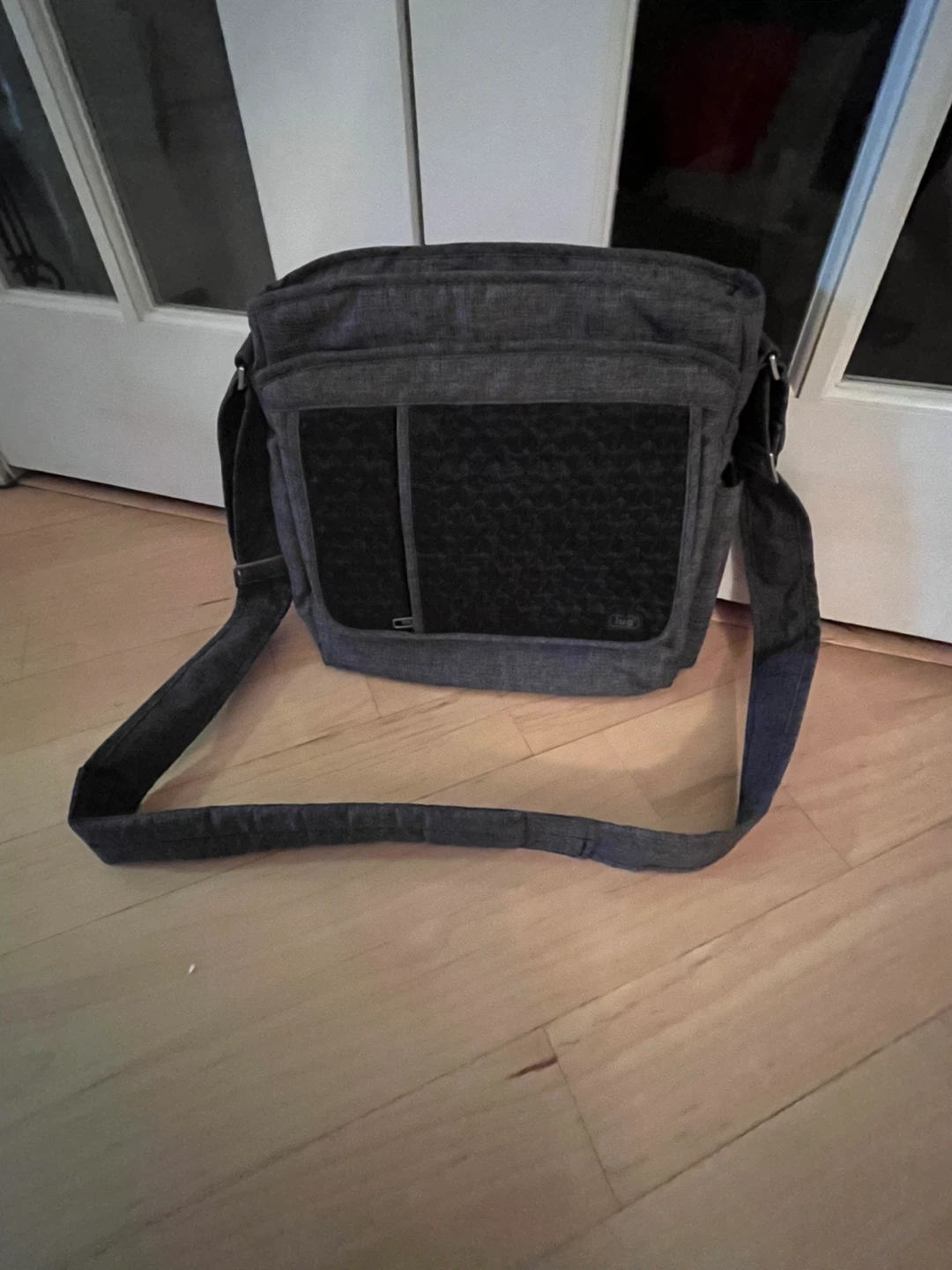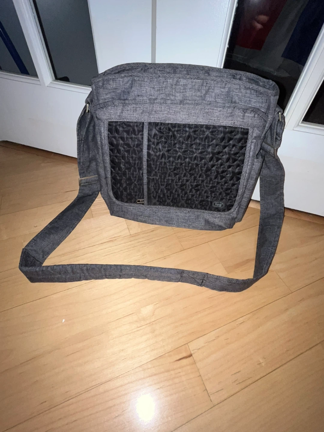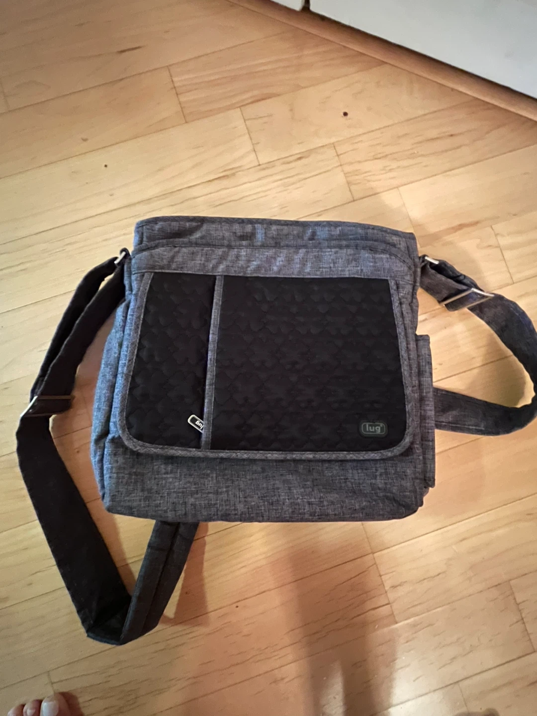 Lug messenger bag in heather grey. It's in almost new condition, features a quilted front pocket and a long, adjustable shoulder strap. Perfect for everyday use or traveling. Lots of pockets for all your belongings. $20 Pick up location at Eglinton and Redpath near Yonge St.