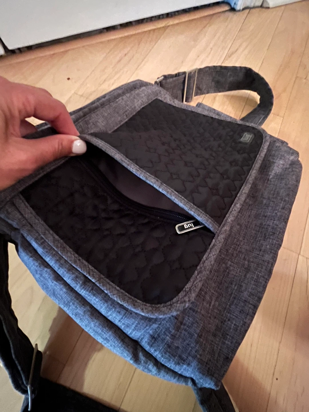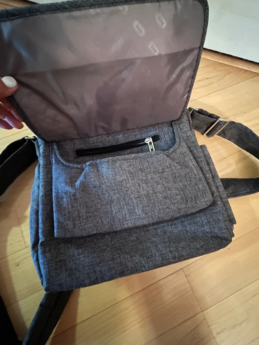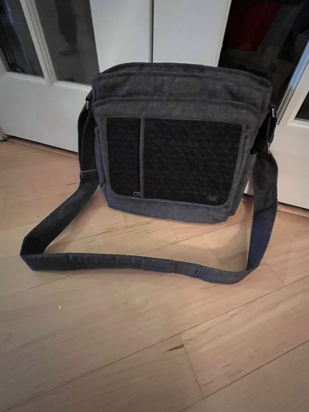 Lug messenger bag in heather grey. It's in almost new condition, features a quilted front pocket and a long, adjustable shoulder strap. Perfect for everyday use or traveling. Lots of pockets for all your belongings. $20 Pick up location at Eglinton and Redpath near Yonge St.