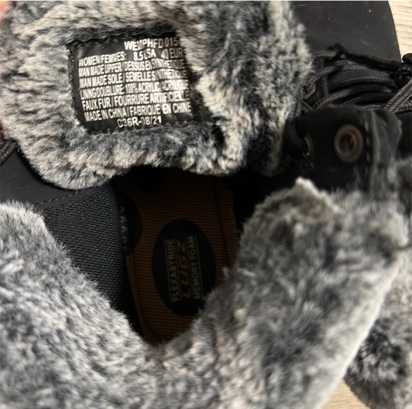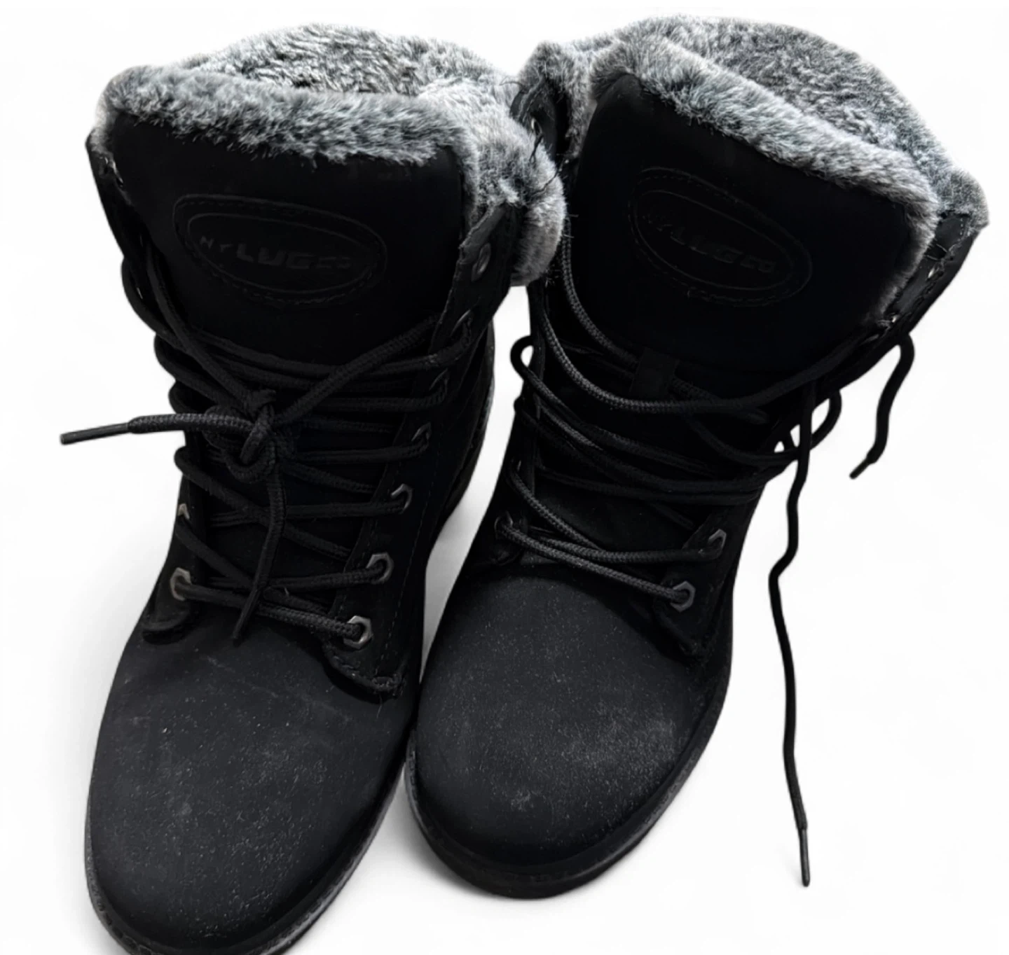60Selling a pair of LUGZ women's boots in size 8.5. These black boots have a faux fur lining and a memory foam insole for extra comfort. They're perfect for the colder months