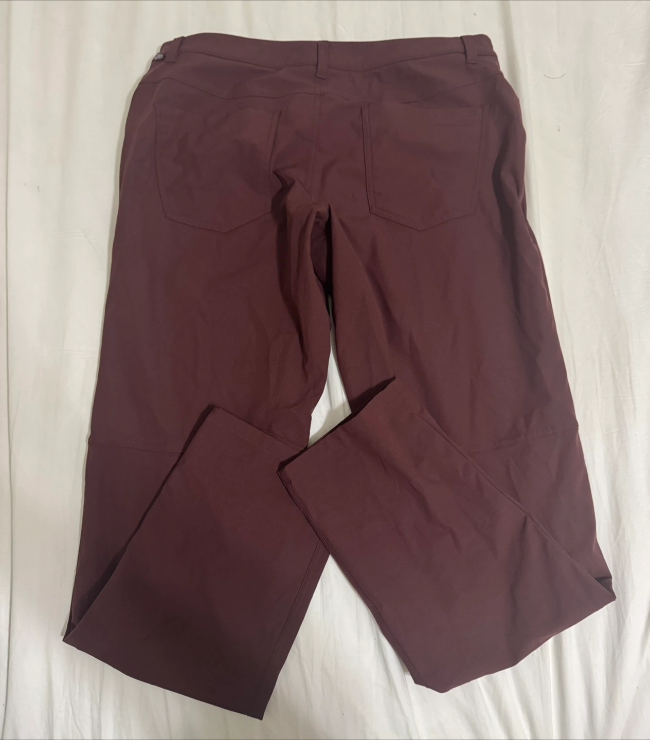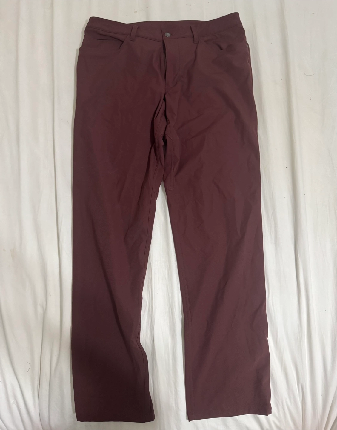 Selling a pair of Lululemon ABC pants in size 34. The pants are a nice maroon colour and in great condition. Perfect for everyday wear!