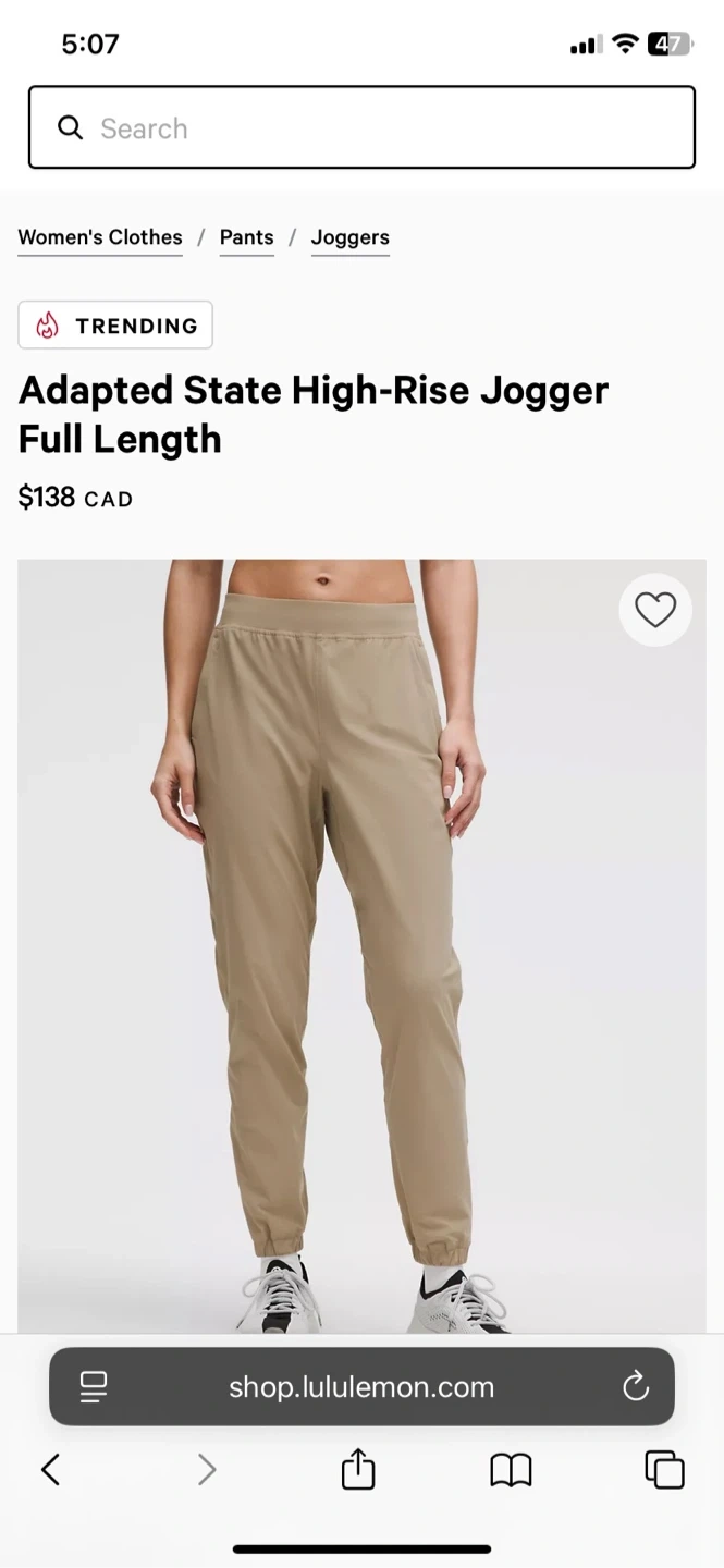 Lululemon women’s adapted state high-rise jogger size 6 length is 28. Not sure what the colour is called. Paid 138.00 asking 30.00 in excellent condition just has been folded up. Bough the wrong size. Can no longer return. Has clothing tags.