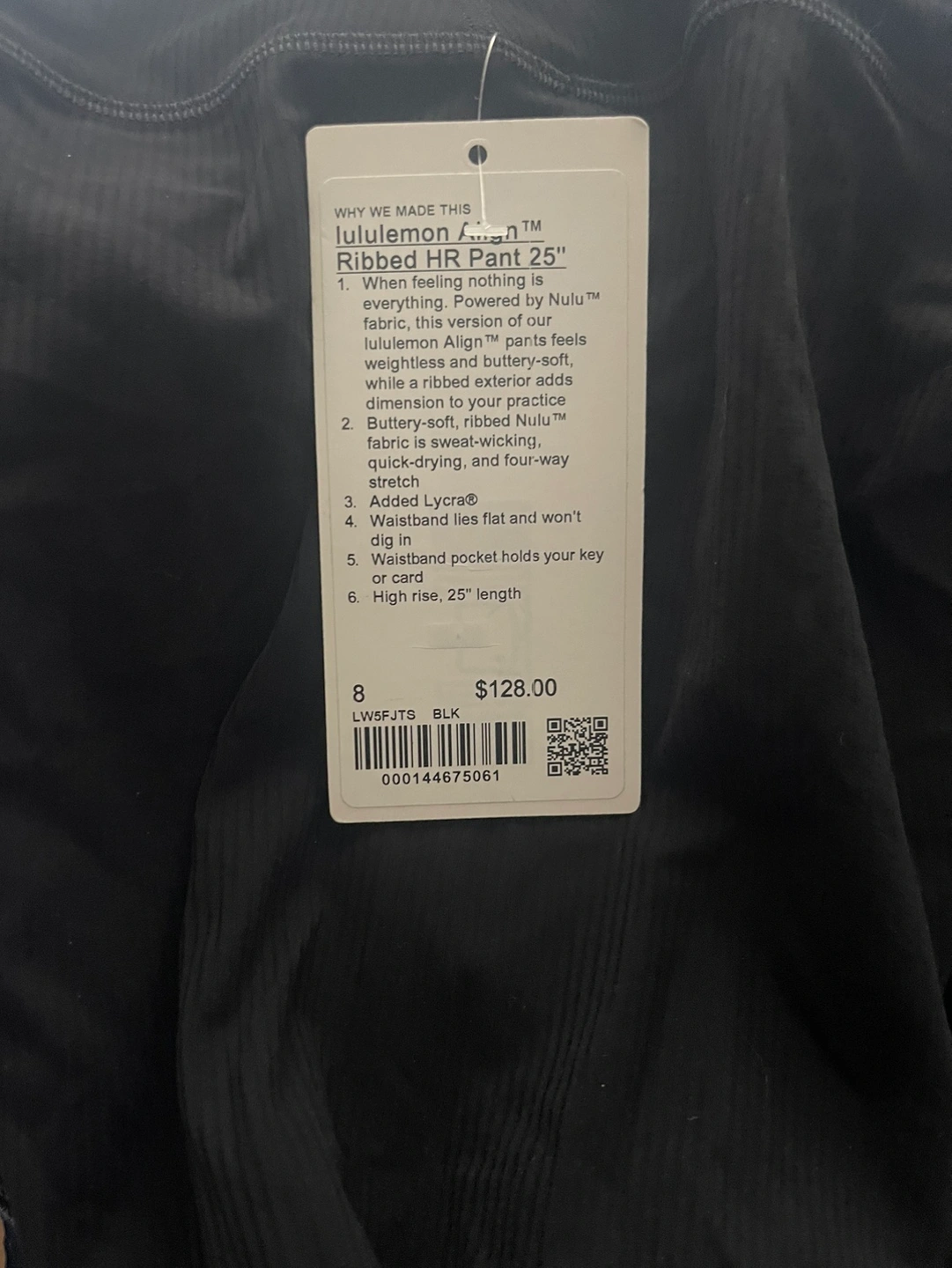 38Black Lululemon Align High-Rise Ribbed Pant size 8 brand new