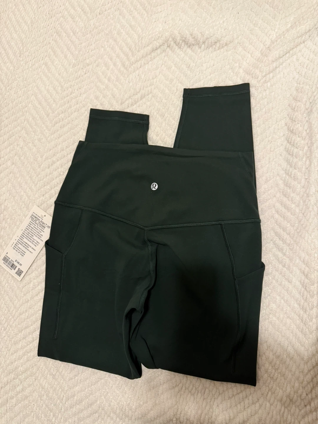 Selling a pair of Lululemon Align High-Rise leggings in a beautiful dark green colour! They're in great condition and are a size 6. Originally bought for $118. Perfect for yoga or everyday wear