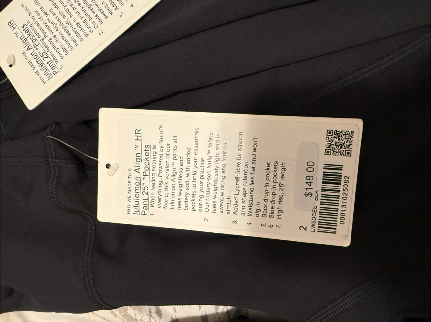 Selling a Lululemon Align HR Pant 25" with Pockets in size 0,2,4,6,8,10,12 These pants are made with buttery-soft Nulu fabric that's sweat-wicking and four-way stretch. They feature a high rise and a 25" length. Originally bought for $148.00