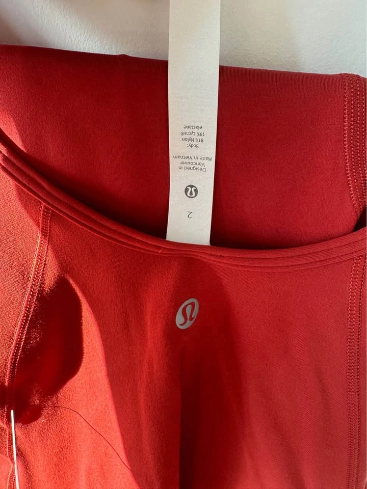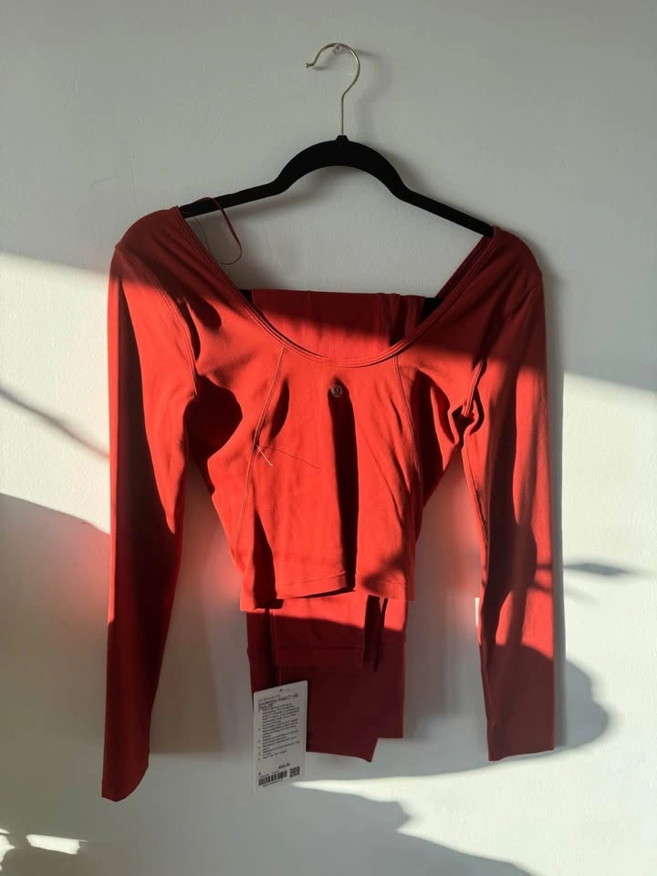 10Brand new with tags lululemon align HR pant 28’ leggings and matching long sleeve top in the color cayenne. The top is a size 2 (has extreme stretch so anyone up to a size 6 can fit in it if you like a tight fit) and the leggings are a size 6. If you want to buy separately the leggings are 50 and the top is 25