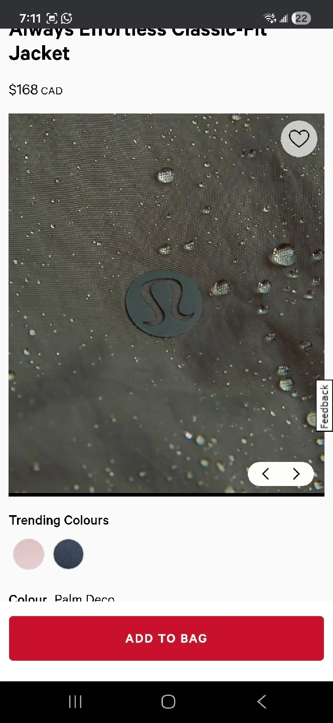 10Lululemon's Always Effortless Classic-Fit Jacket in Palm Deco colour! This jacket is in Brandnew. It originally retailed for $168 CAD, so you're getting a fantastic deal