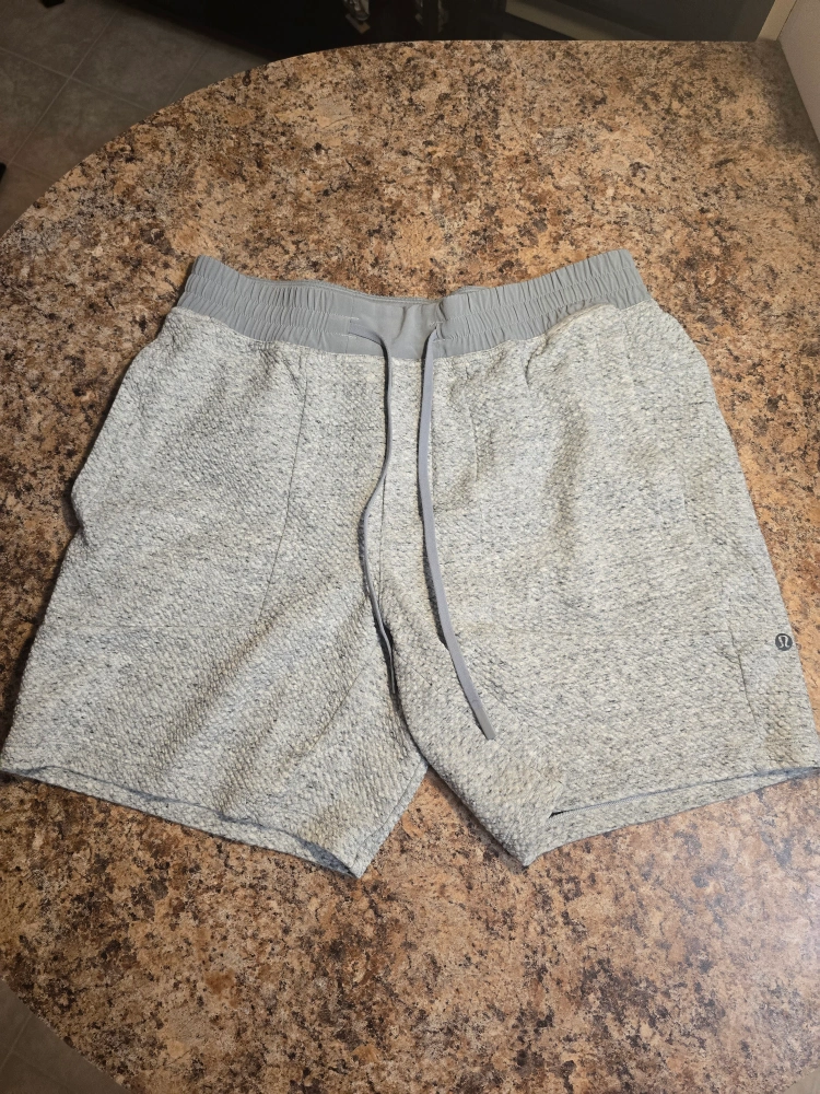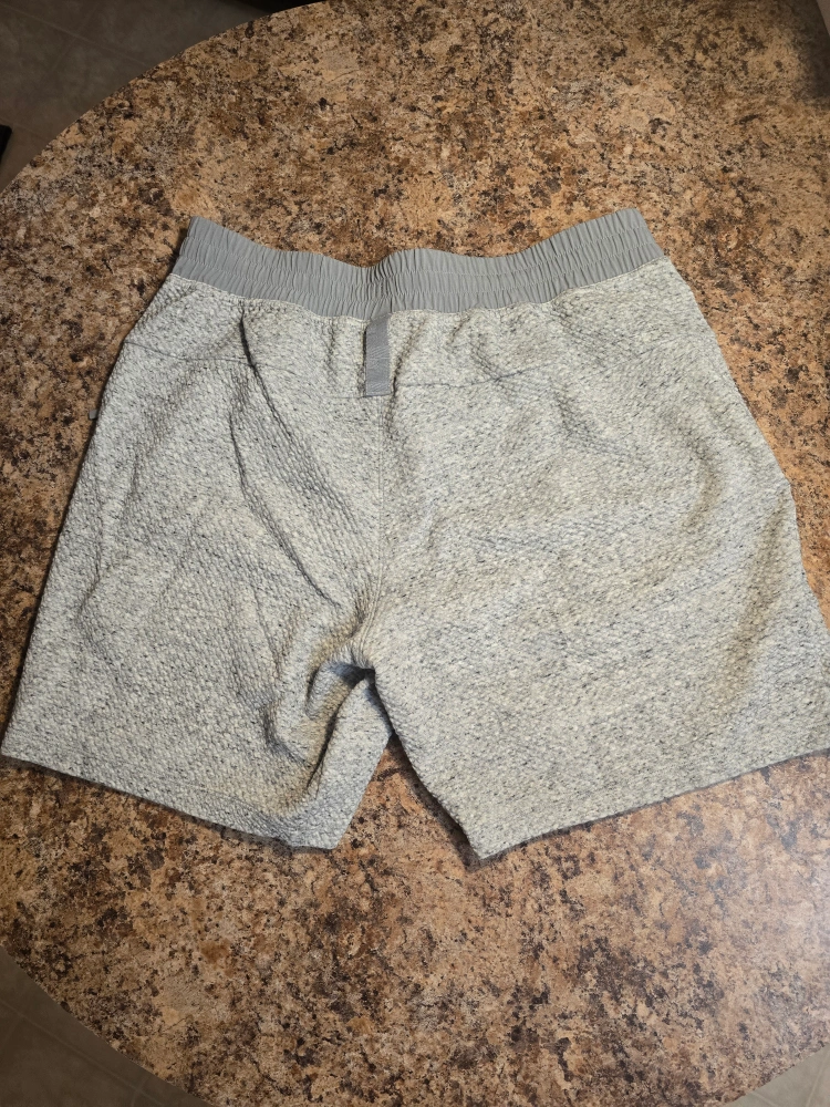 266Selling a pair of Lululemon At Ease training shorts in size large. These shorts are in great condition and perfect for workouts or casual wear. The textured fabric adds a unique look and feel!