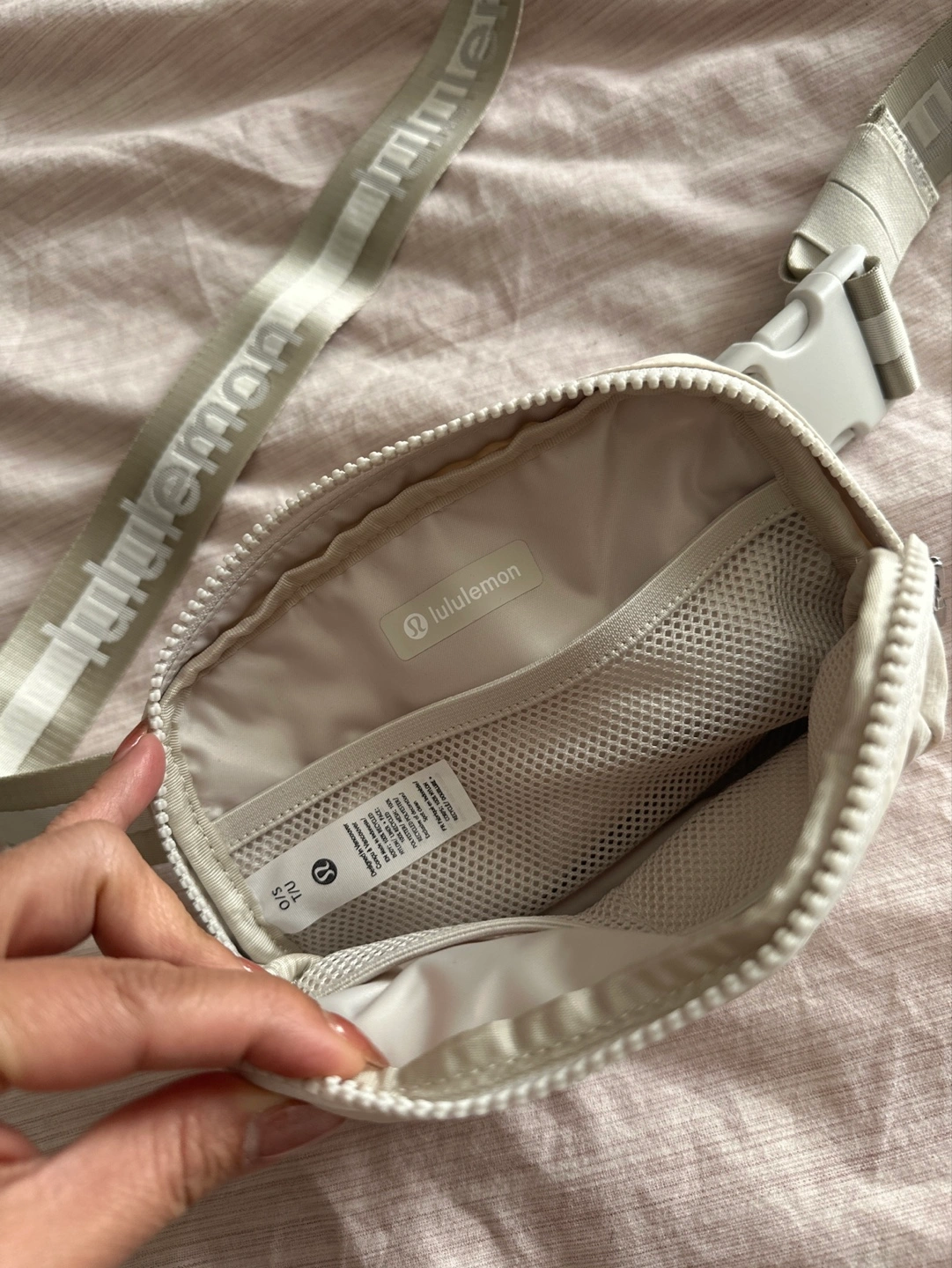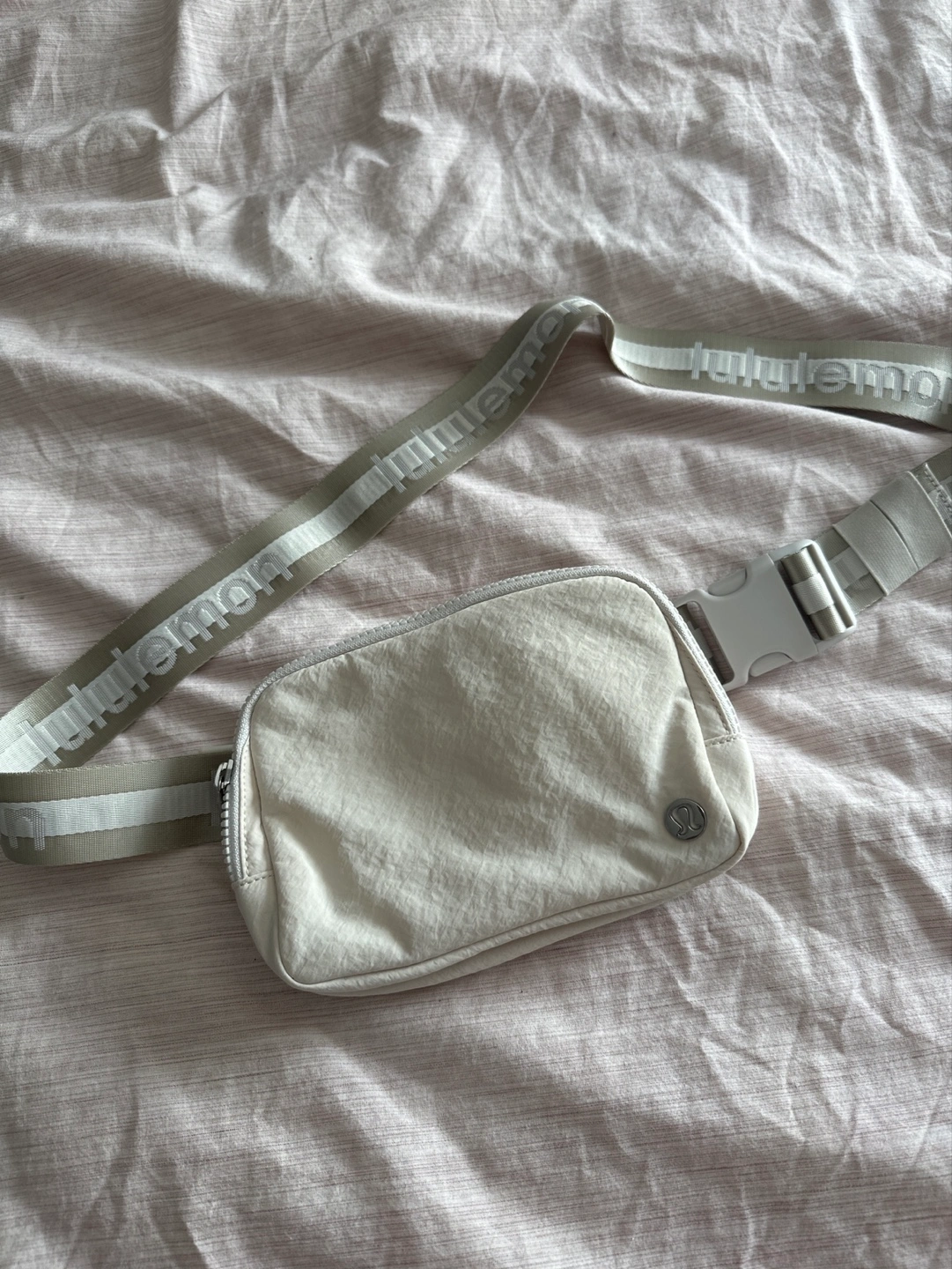 5New without tags. Small beige Lululemon belt bag. Adjustable strap. Zip closure. Great for workouts or everyday use. Interior pocket.