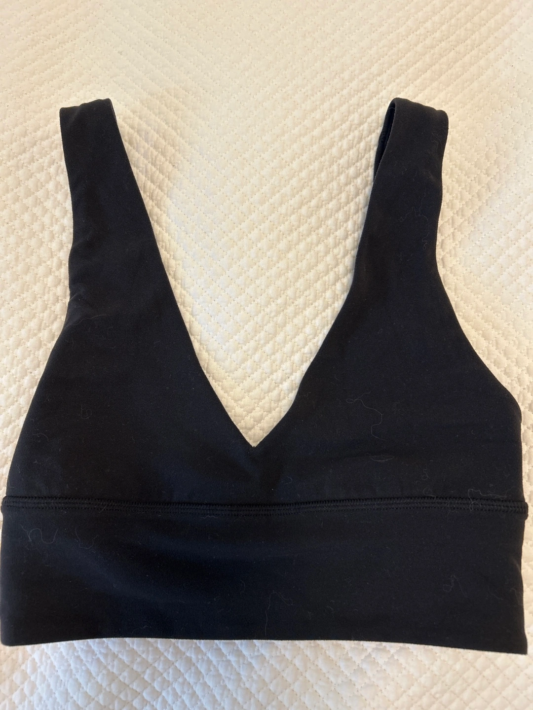 Selling a Lululemon bra in black, size 2. It's in great condition and ready for a new home! Perfect for low-impact workouts or everyday wear. The Lululemon logo is visible at the back