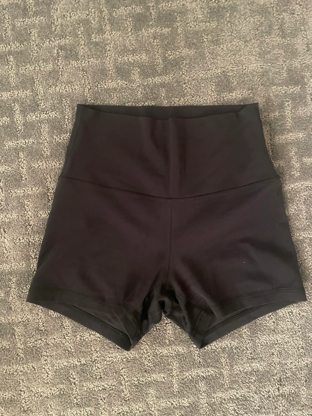 28Black high-rise shorts. Great for working out or casual wear. Comfortable and stretchy material. Size 6