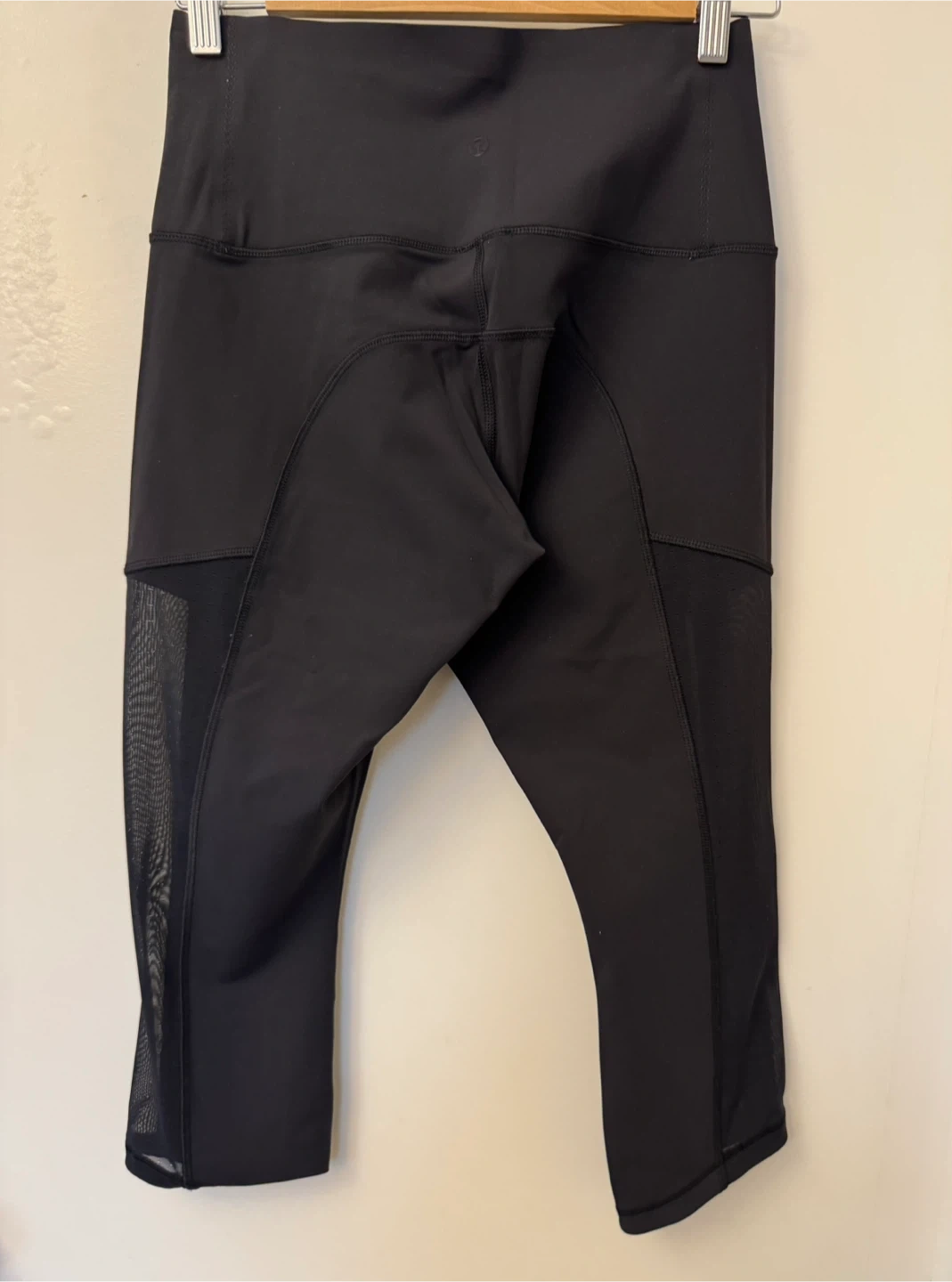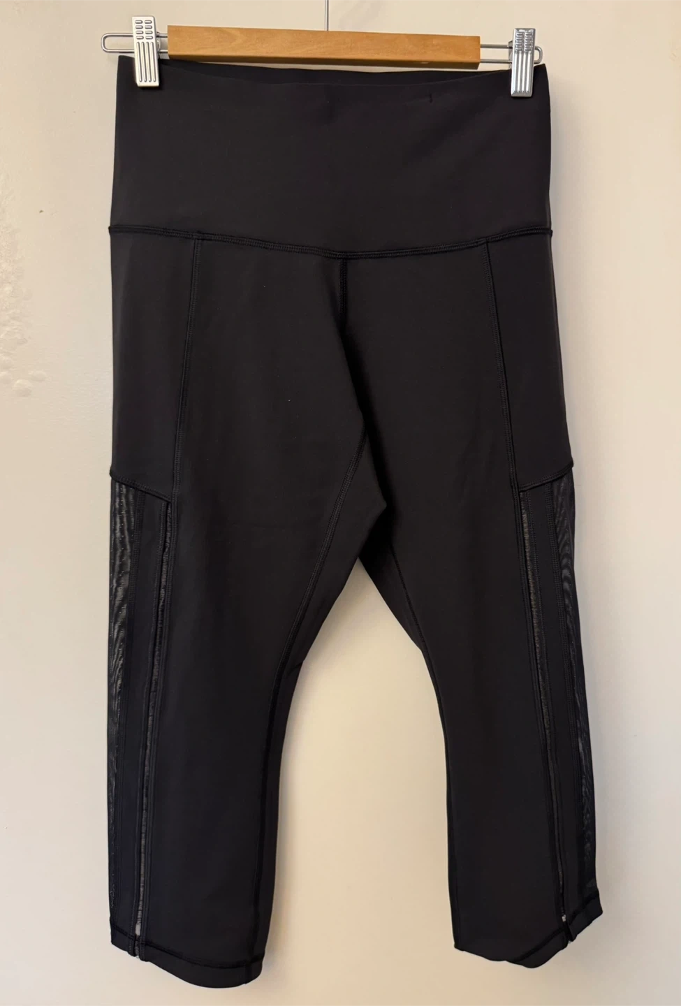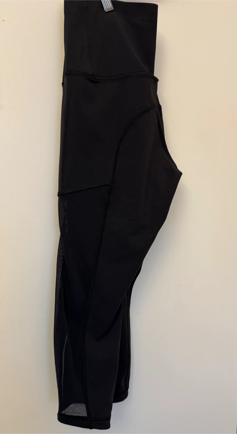 Selling a pair of black Lululemon leggings. They feature stylish mesh detailing on the sides. Great for workouts or everyday wear! They are in great condition and ready for a new home