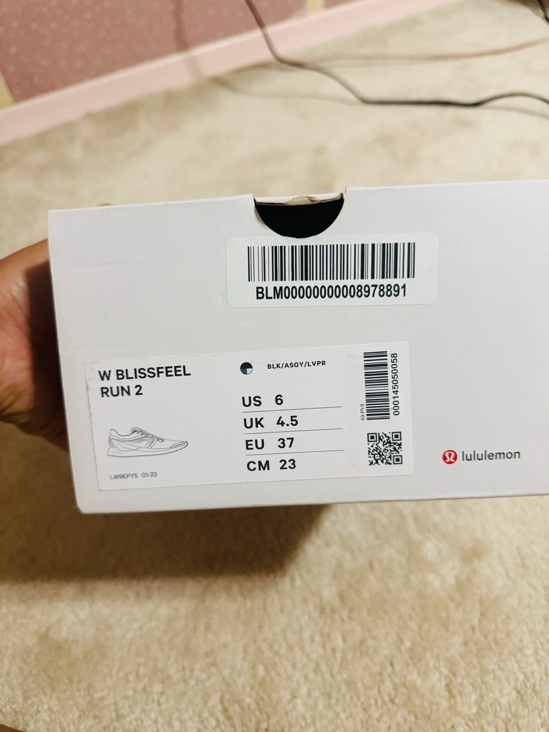 71Selling a pair of Lululemon Blissfeel Run 2 sneakers in black! They are a US size 6 and come with the original box