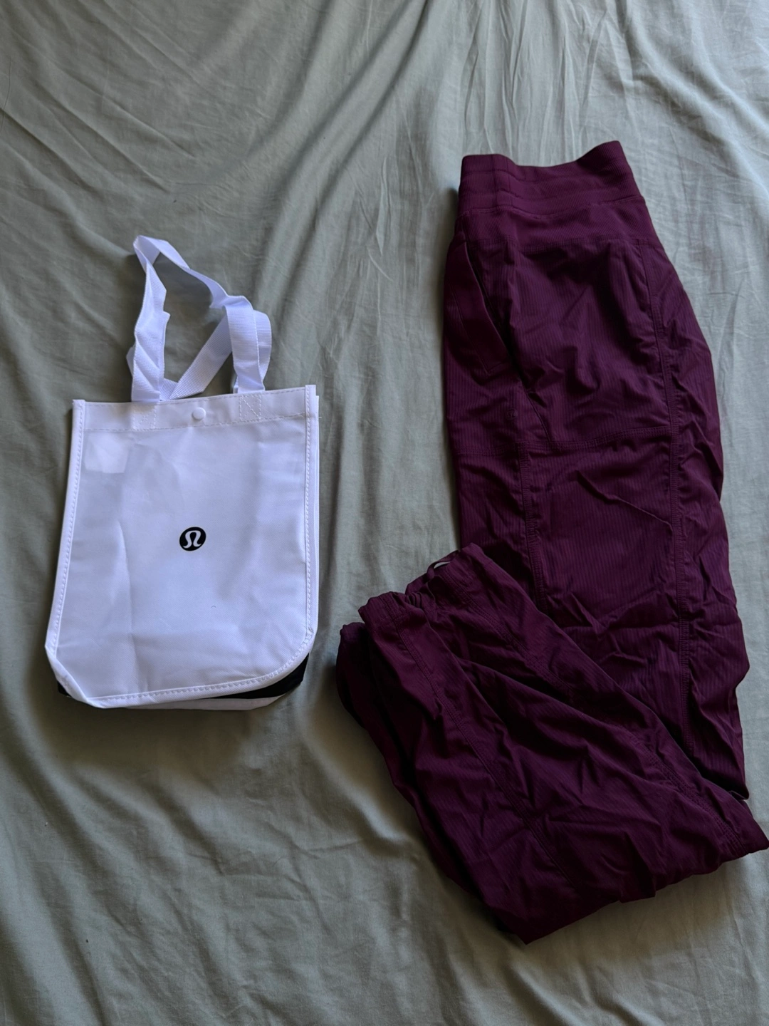 Lululemon Align™ high-rise joggers. Burgundy colour. Drawstring waistband. Includes a white Lululemon shopping bag.