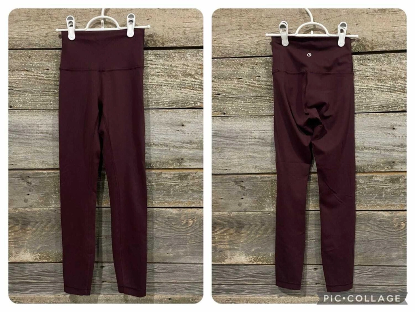 123Lululemon Burgundy Leggings - Size 0 Elevate your activewear collection with these stunning Lululemon burgundy leggings, designed to combine style, comfort, and performance. These leggings, in a size 0, are perfect for those with a petite frame and offer a sleek, flattering fit that moves with you. In brand new condition, these leggings have never been worn and are ready to become your go-to pair for workouts, yoga sessions, or casual outings. The rich burgundy color adds a sophisticated touch to any outfit, making these leggings a versatile addition to your wardrobe. Product Details: • Brand: Lululemon • Size: 0 (Ideal for a 22” waist and 32” hip) • Color: Burgundy • Condition: Brand new, never worn • Material: High-performance fabric that’s breathable, moisture-wicking, and offers excellent stretch • Features: • Comfortable, secure waistband • Four-way stretch fabric for maximum flexibility • Quick-drying and sweat-wicking to keep you cool and dry • Durable and designed for long-lasting wear • Care: Machine washable, easy to maintain • Origin: Pet/smoke-free home in Park Ridge These leggings are perfect for any activity, from high-intensity workouts to casual everyday wear. The burgundy color is both stylish and versatile, pairing easily with various tops and footwear. This item is cross-posted, so don’t miss your chance to own these brand-new Lululemon leggings. If you’re interested or have any questions, please feel free to reach out. I’m happy to discuss pricing and pick-up arrangements that work best for you.