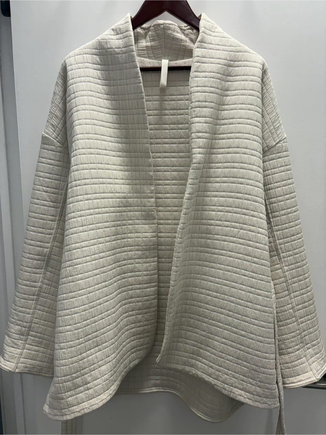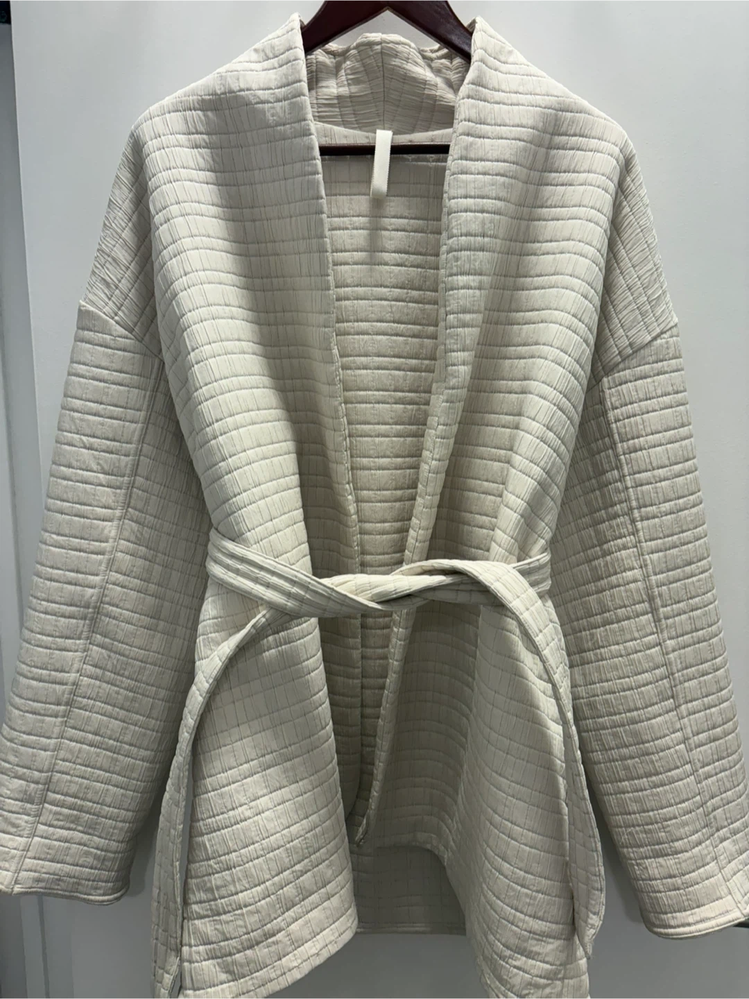 44Lululemon jacket in a cream colour. Matching belt to cinch the waist or wear it open. M/L oversized relaxed fit. Rarely worn. Once or twice.