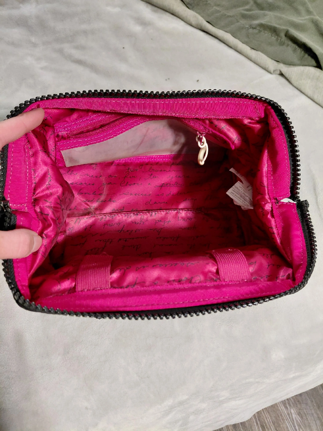 60Selling Lululemon cosmetic bag! has a vibrant pink interior. Perfect for travel or everyday use to keep your essentials organized and stylish