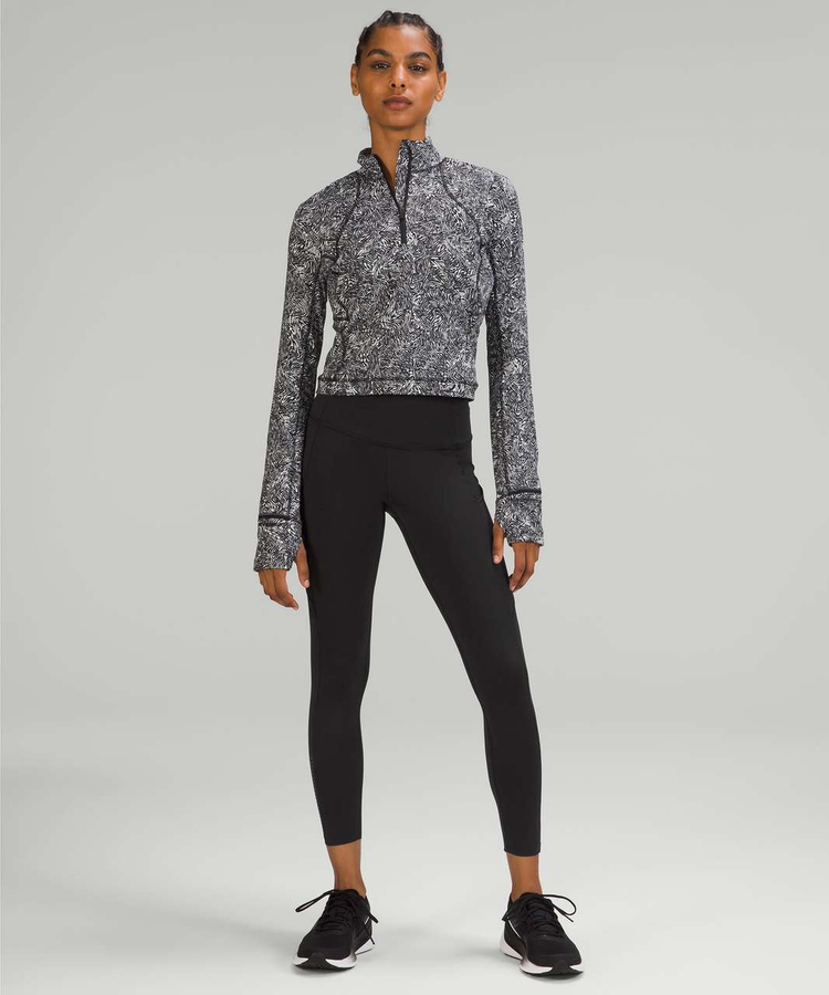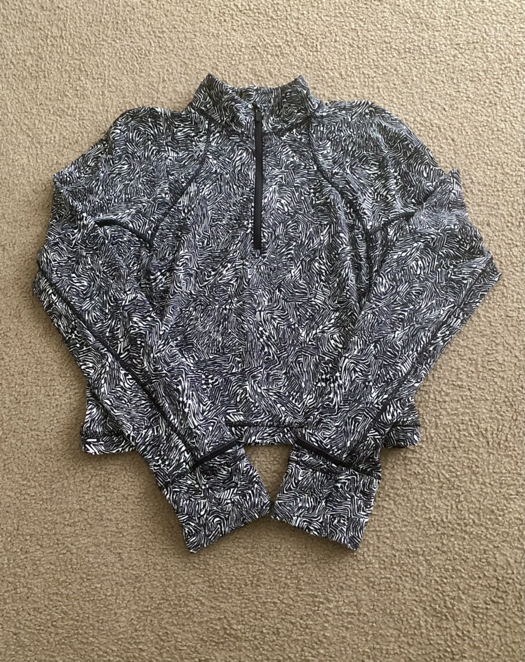 173Lululemon Its Rulu Run Cropped Half Zip Offbeat Alpine White Black Size 10 Condition - good Pickup only