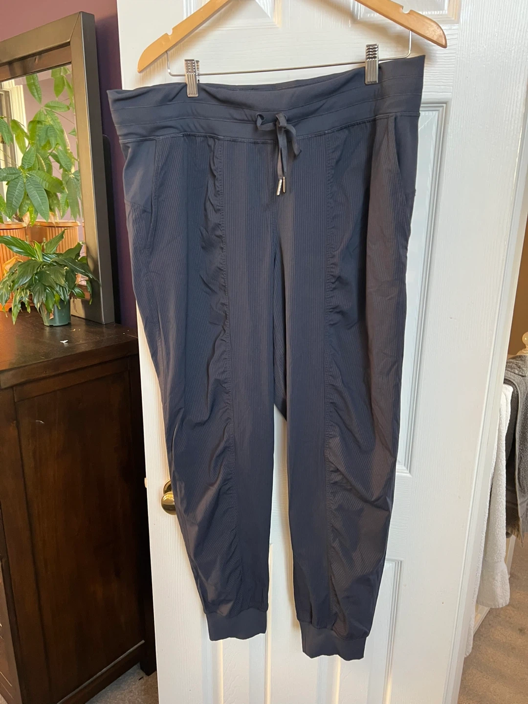 Selling a pair of Lululemon studio pants in size 14! They're in great condition and super comfy. The material is 86% nylon and 14% elastane. Perfect for lounging or light workouts!