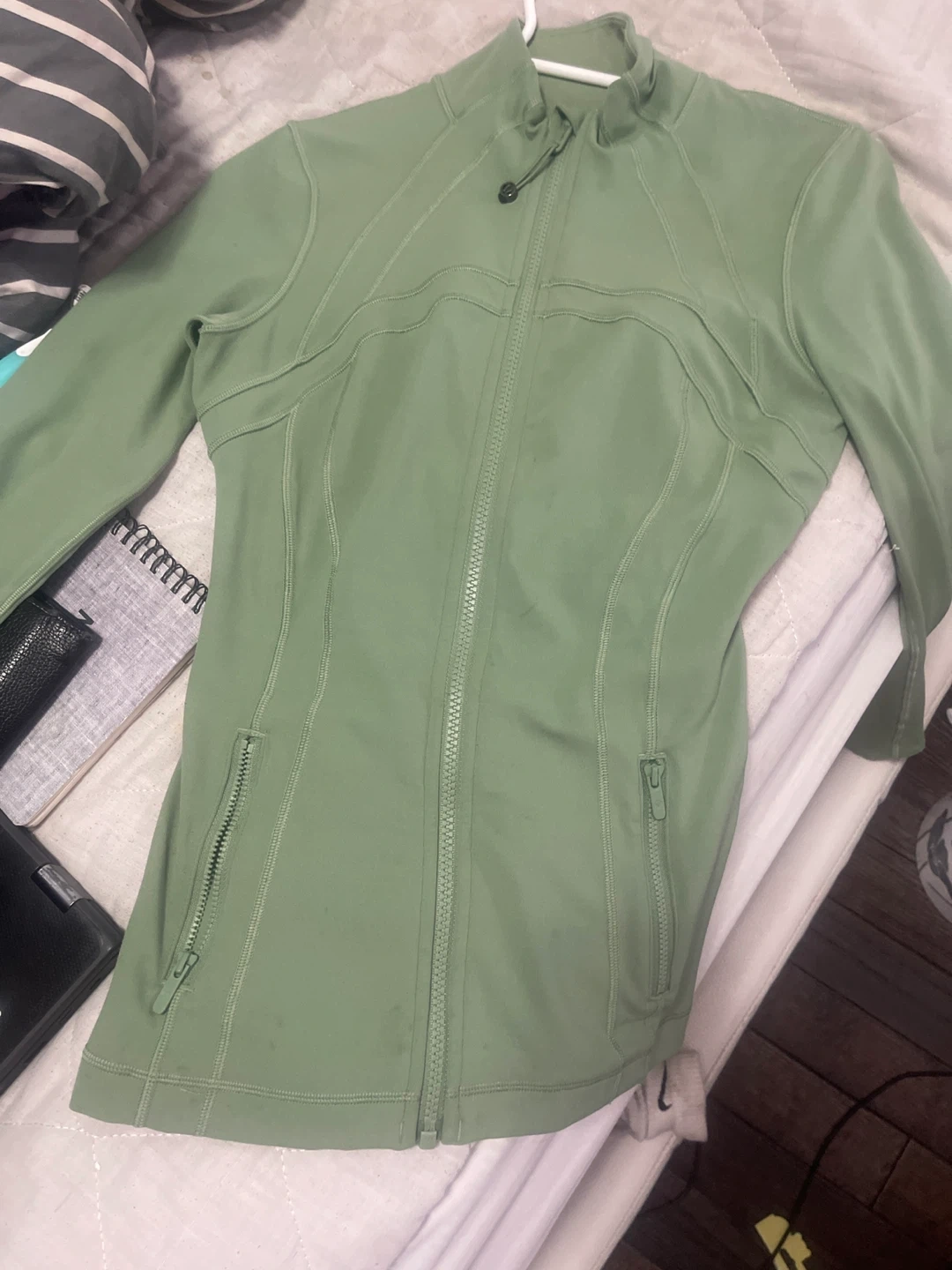 Selling a Lululemon Define Jacket in a lovely green colour! It's in great condition and perfect for workouts or everyday wear. This jacket is known for its flattering fit and comfortable feel. It features a full zipper and pockets for convenience. A great addition to your activewear collection!