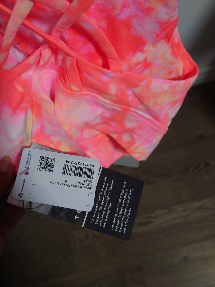 60Selling a Lululemon Energy Bra New Long Line in size 4. The dye effect is slightly different on every garment, making each one unique! This bra is perfect for workouts or everyday wear