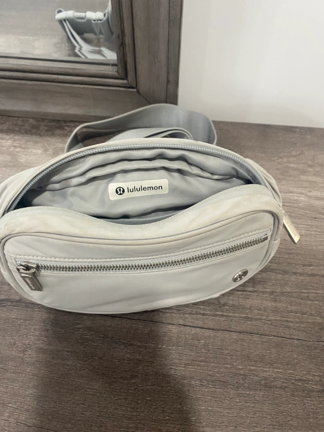 Selling a Lululemon Everywhere Belt Bag in a light grey colour. It's in great condition and ready for a new home! Perfect for keeping your essentials close at hand while you're on the go