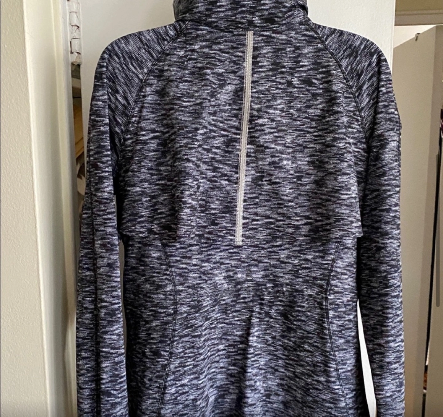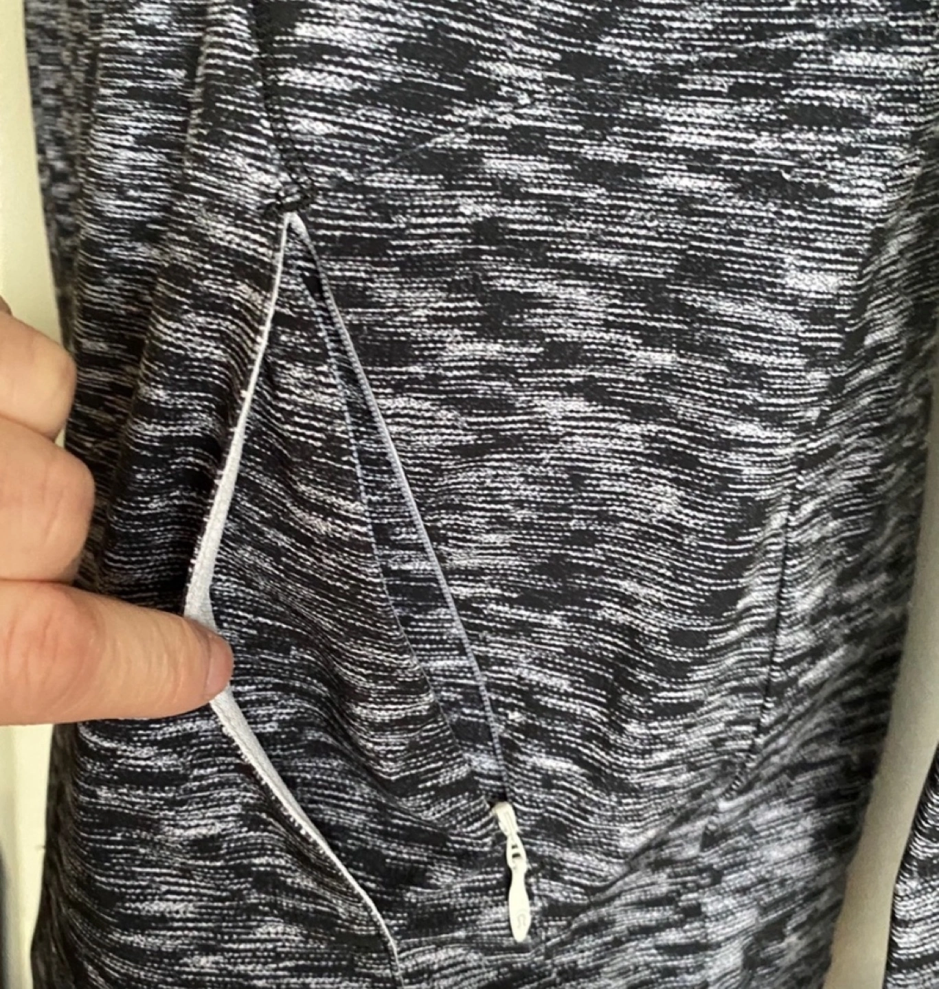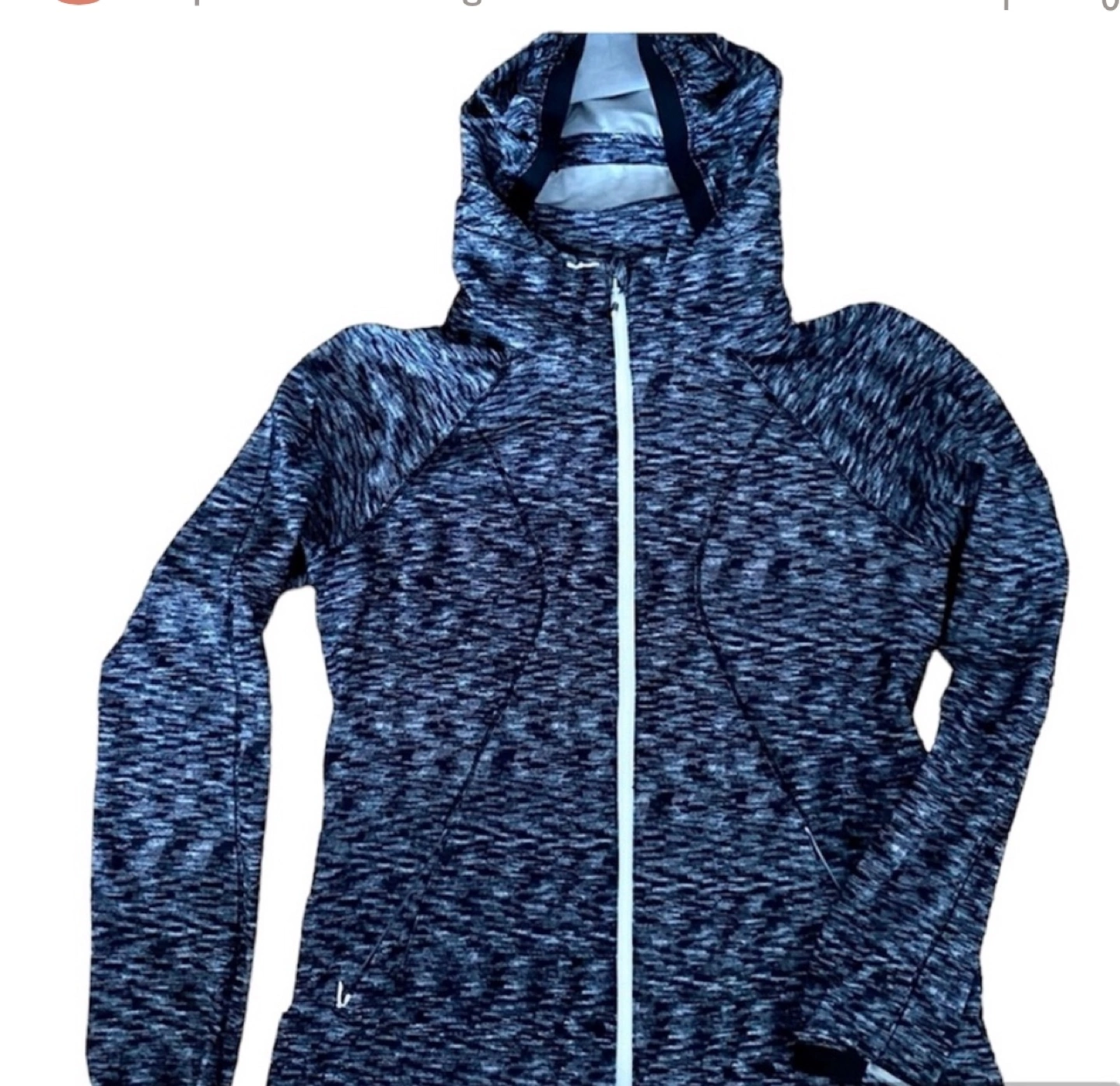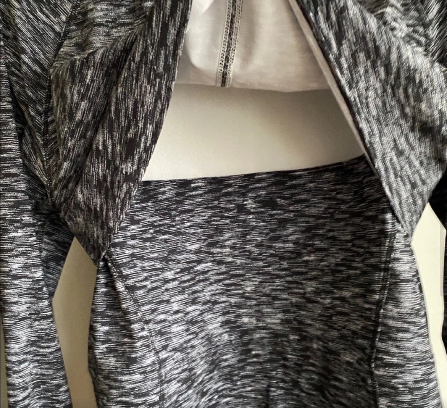 Women's Lululemon Go The Distance Jacket. Size 8. Full zip. Long sleeves. Black and white mottled pattern. Soft and comfortable material. Perfect for layering or wearing on its own.