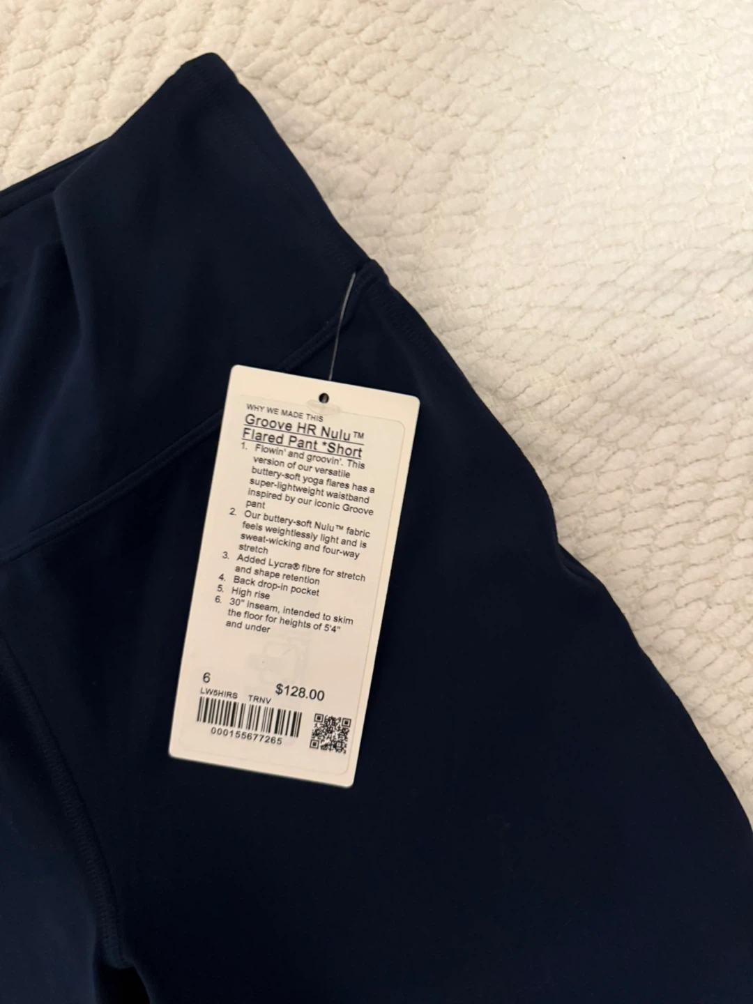 Selling a pair of Lululemon Groove HR Nulu short pants in size 6 &8 . These flowy pants have a buttery-soft Nulu fabric that feels weightlessly light and is sweat-wicking with four-way stretch. They also have Lycra fibre for stretch and shape retention. These pants are intended to skim the floor for heights of 5'4" and under. Originally bought for $128
