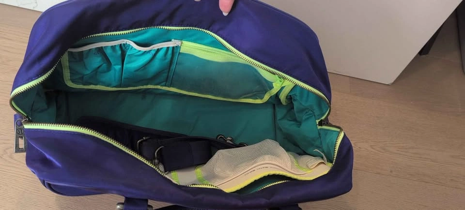 Blue good condition multiple pockets long strap included.
