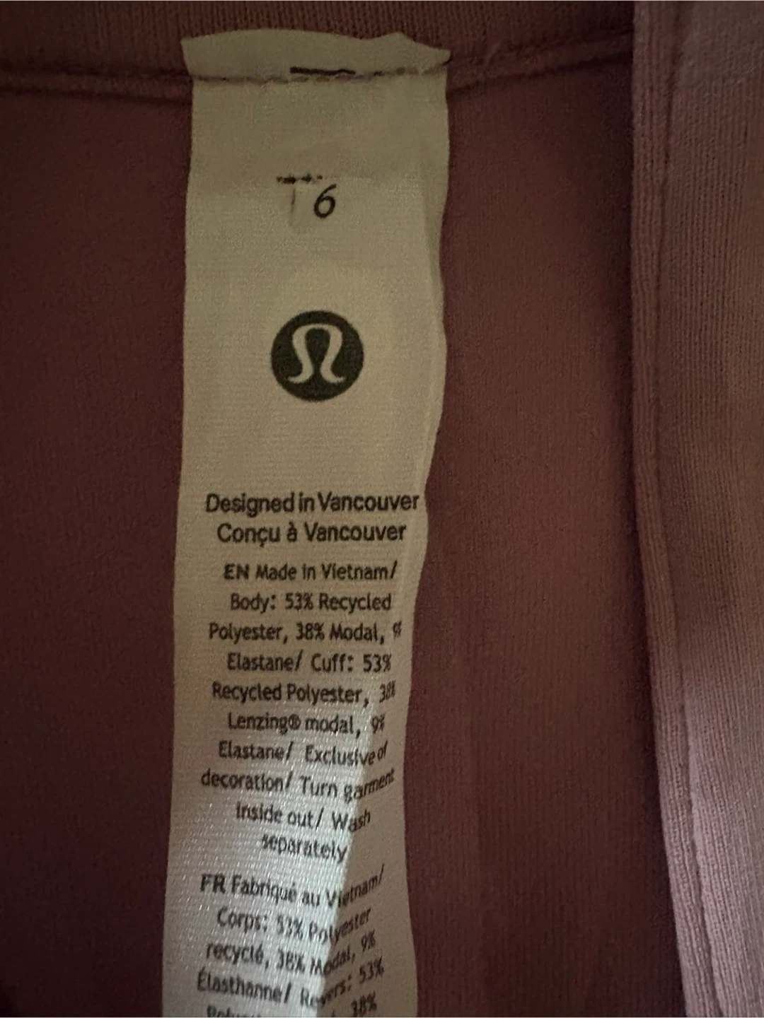87Selling a cute Lululemon half zip pullover in size 6. It's in great condition and ready for a new home! The material is soft and comfy, perfect for layering or wearing on its own. The body is made of 53% recycled polyester, 38% modal, and 9% elastane, while the cuff is 53% recycled polyester, 38% Lenzing modal, and 9% elastane