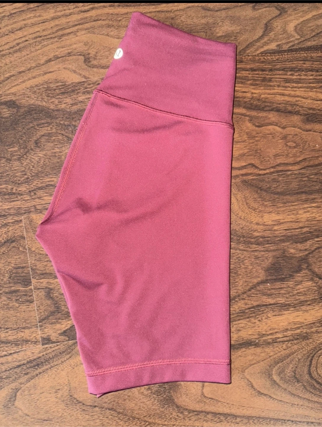 156Selling a pair of Lululemon Align High Rise Shorts in a lovely burgundy colour. They're in great condition and are a size 4 Perfect for yoga or everyday wear!