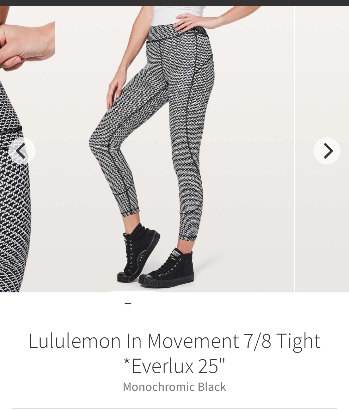 330Lululemon 7/8 length tights. Everlux fabric. High-rise. Hidden waistband pocket. 25" inseam. Black and white geometric pattern. Great for yoga or other workouts.