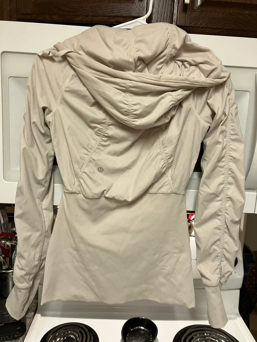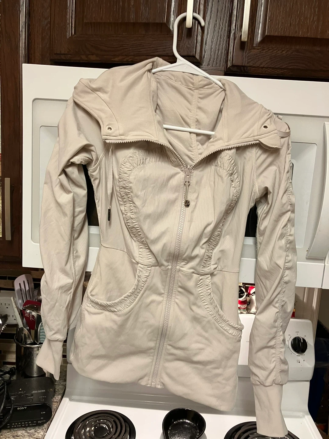 71Lululemon jacket in a size 6. It's in great condition and ready for a new home! The jacket is a light beige colour.