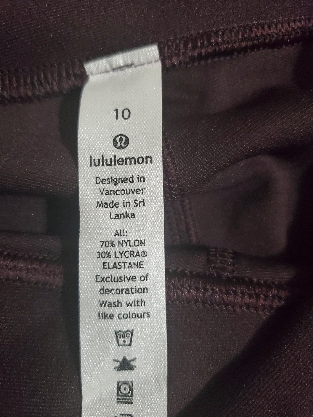 10Selling a pair of Lululemon leggings in size 10. They are made of 70% nylon and 30% Lycra elastane. smoke and pet free. Bought wrong size