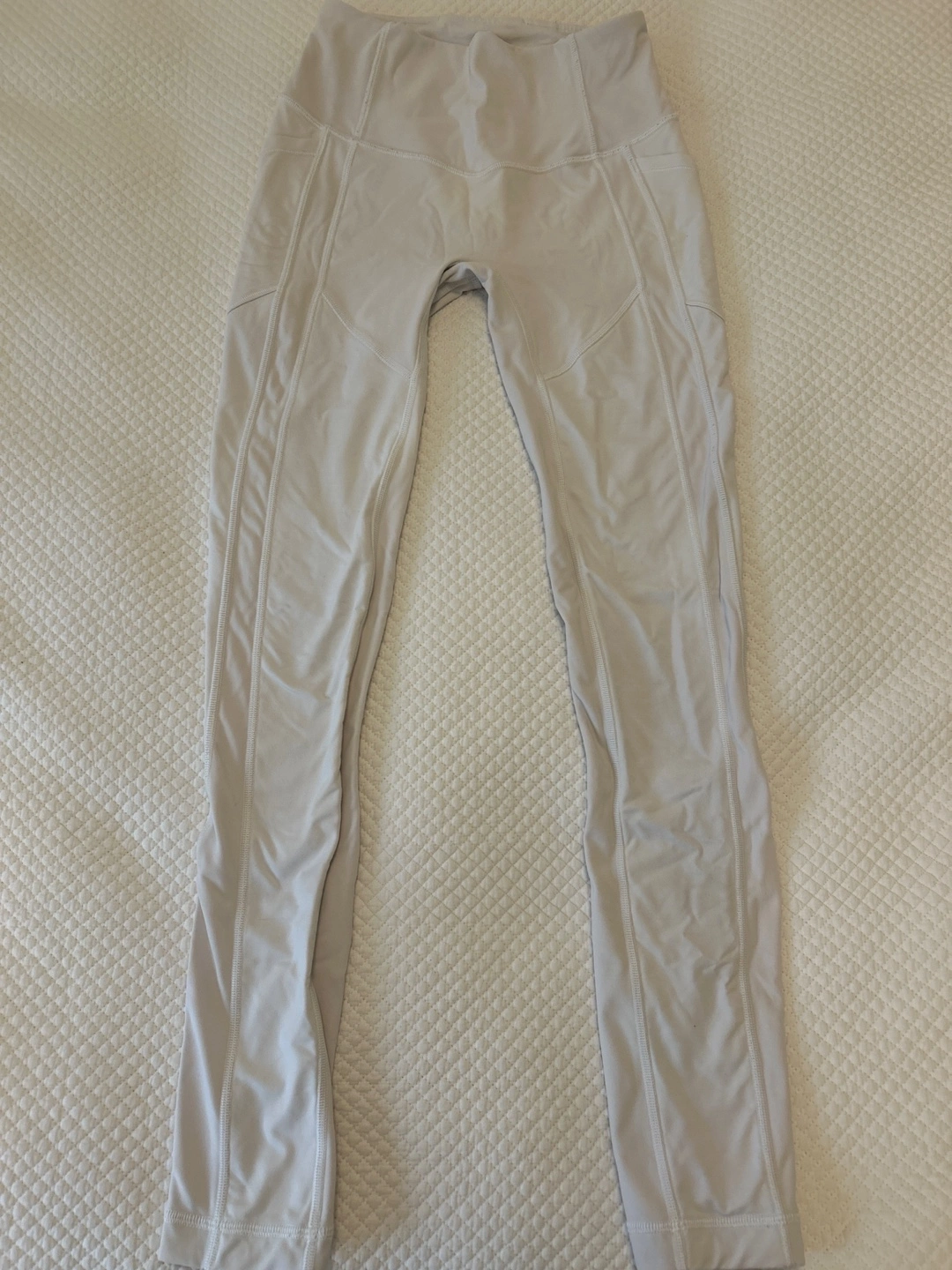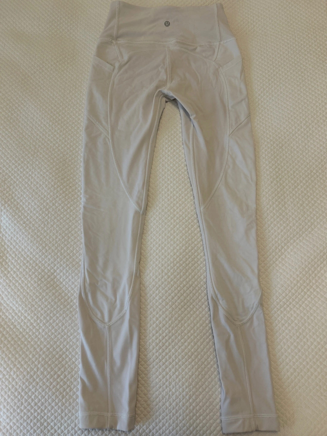 Selling a pair of Lululemon leggings in size 4. They are in great condition and ready for a new home! Perfect for workouts or just lounging around. Inseam: 26”