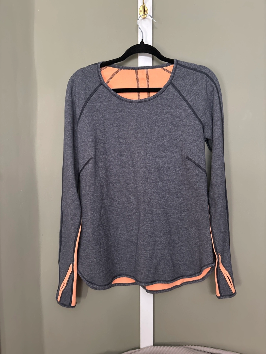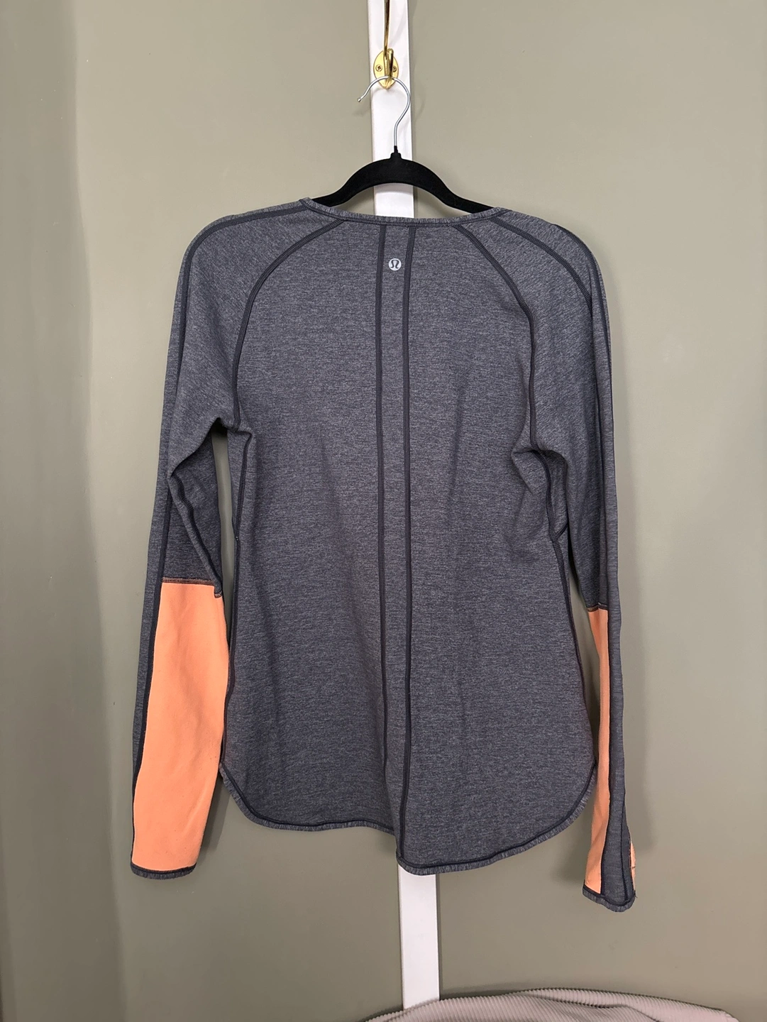 12Long sleeve shirt with orange accents. Perfect for the gym or casual wear.