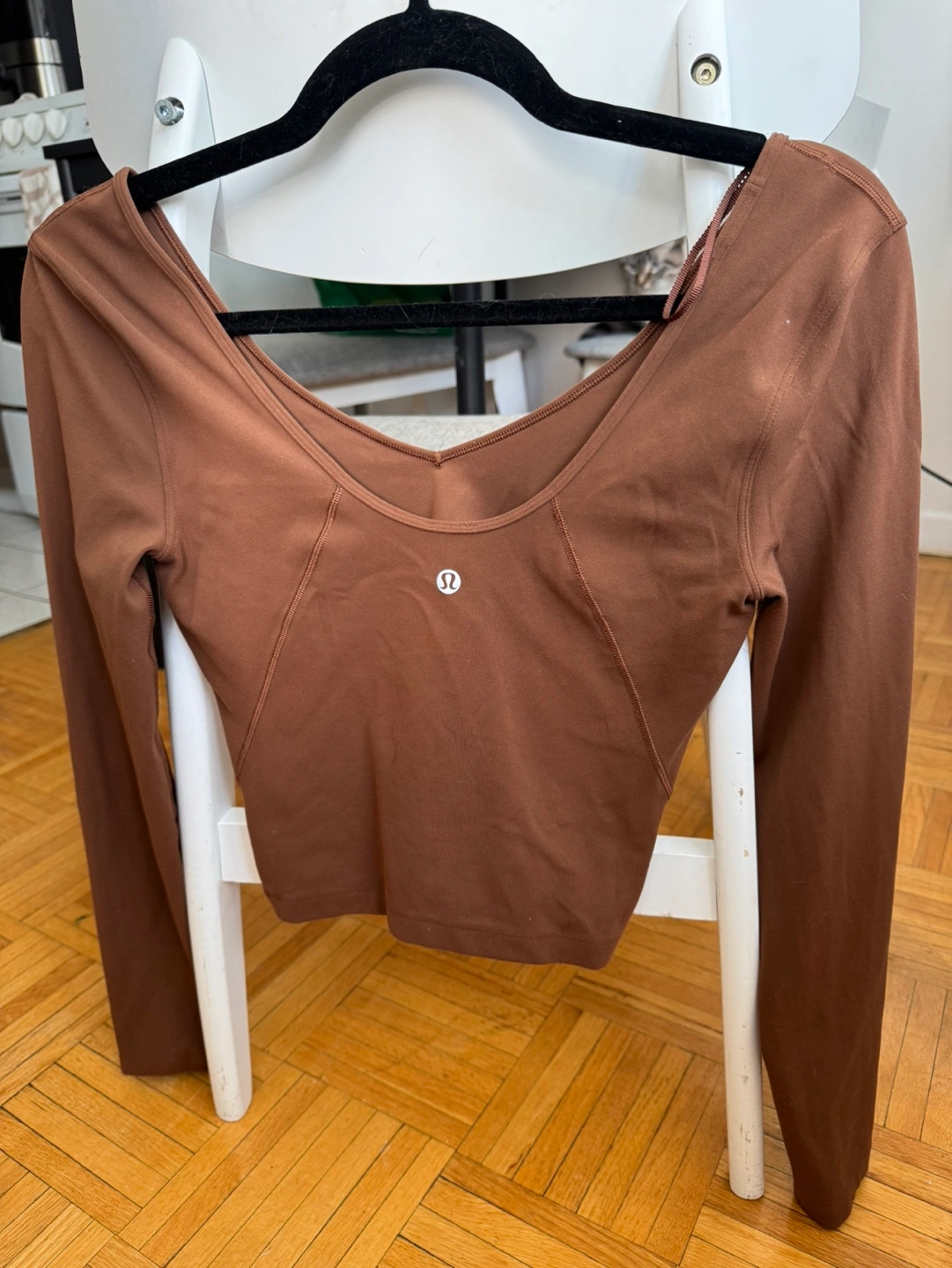 Brown Lululemon long sleeve top, new condition, size 2/4