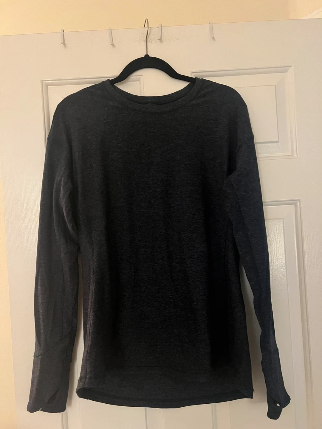 0Selling a Lululemon long sleeve top in size 10. It's in great condition and perfect for workouts or casual wear! The material is soft and comfortable, and it features thumbholes for added convenience.