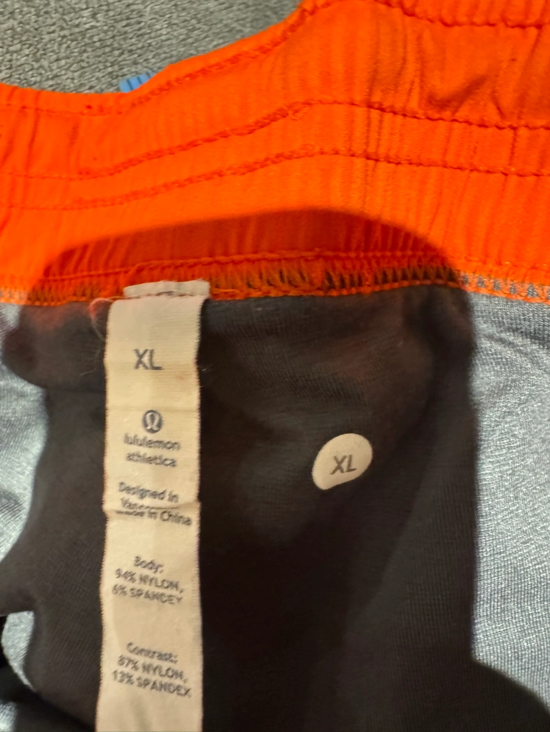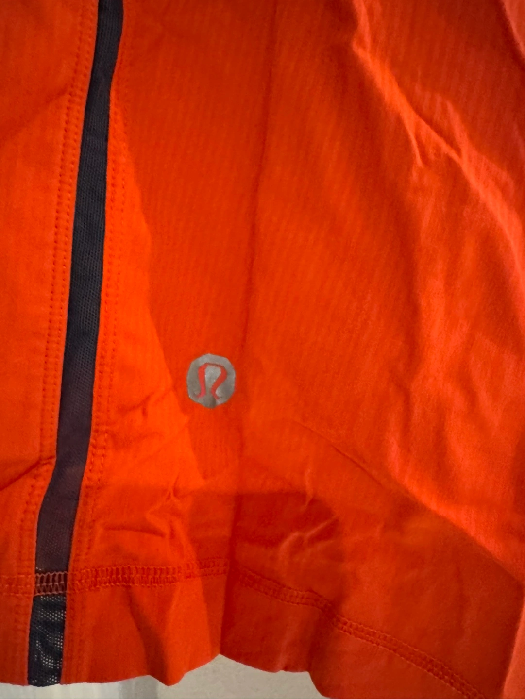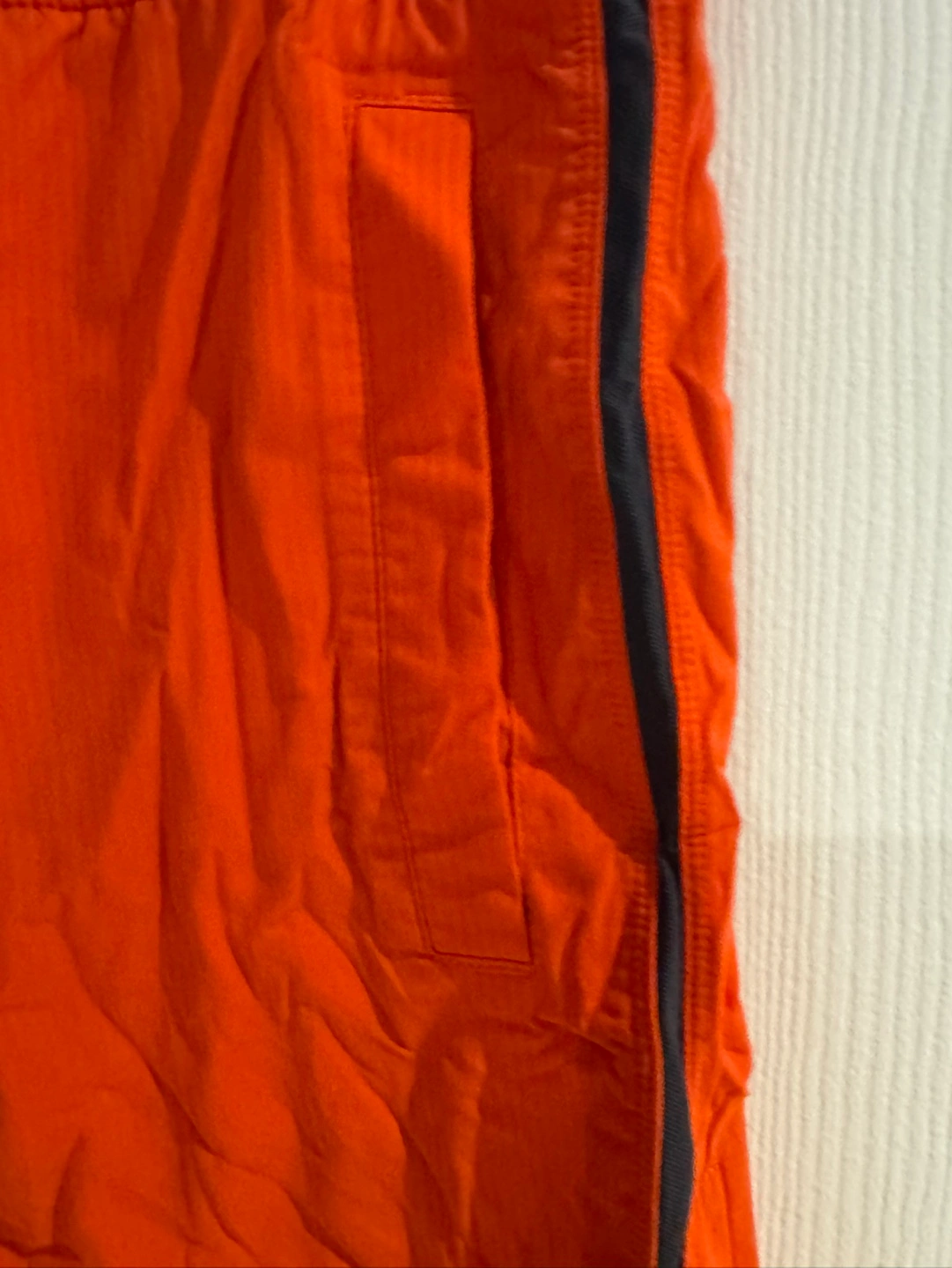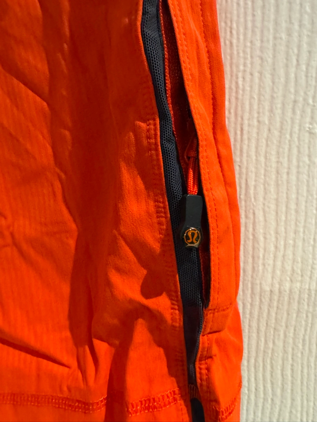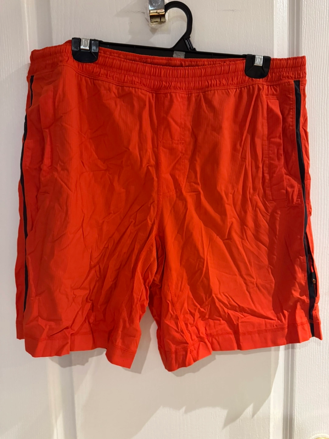 32Men's running shorts. Bright orange colour. Side pockets and a drawstring waistband. Great for workouts or casual wear. Pick up in Woodbridge Islington and Rutherford