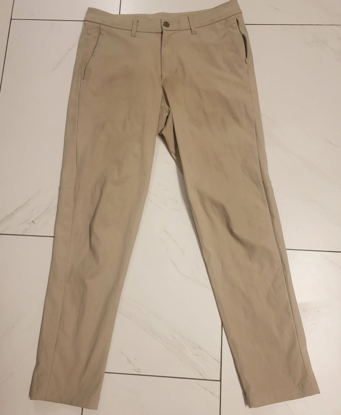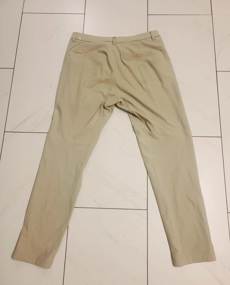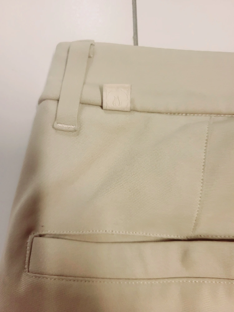 201Beige coloured, slim fit pants. Two front pockets, two back pockets.
