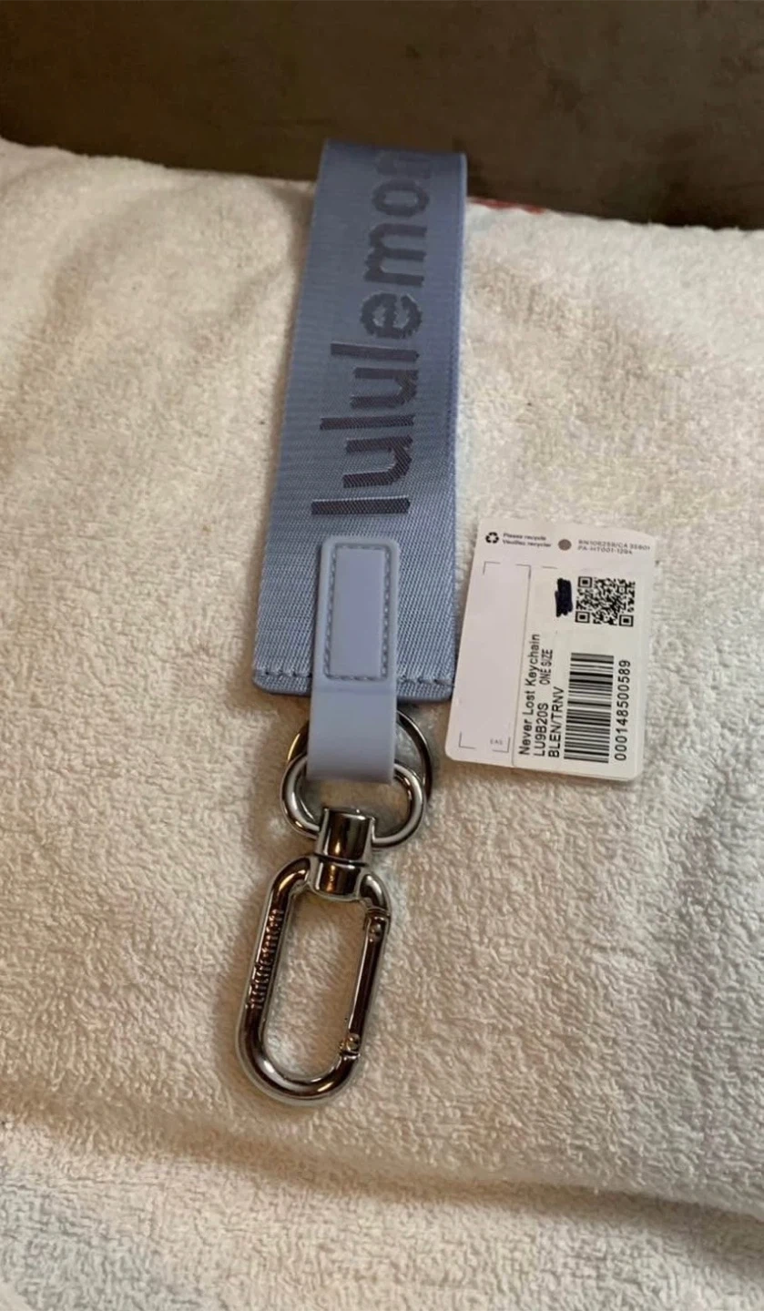 25Selling a Lululemon Never Lost Keychain in a lovely blue colour! It's in great condition and ready to keep your keys safe and stylish