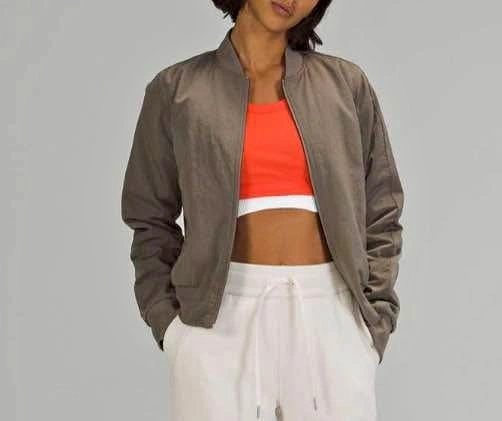 15Lululemon Non-Stop bomber Color: Rover (light olive green) Size: 6 Condition: brand new without tags (has been stored so is a bit wrinkled) Pick up in Bowmanville Elevate your bomber game with this insulated and reversible update on the classic silhouette. Bonus: No matter which way you wear it, both sides will keep you dry in light rain. Designed for: On the Move Warm when wet: Insulation in upper body stays warm when wet Storage: Zippered pockets to store the essentials Fully reversible: Both sides have hand pockets Reversible : Flip inside out for two different looks Primaloft® insulation: Synthetic insulation is strategically-placed to keep you warm where you need it most