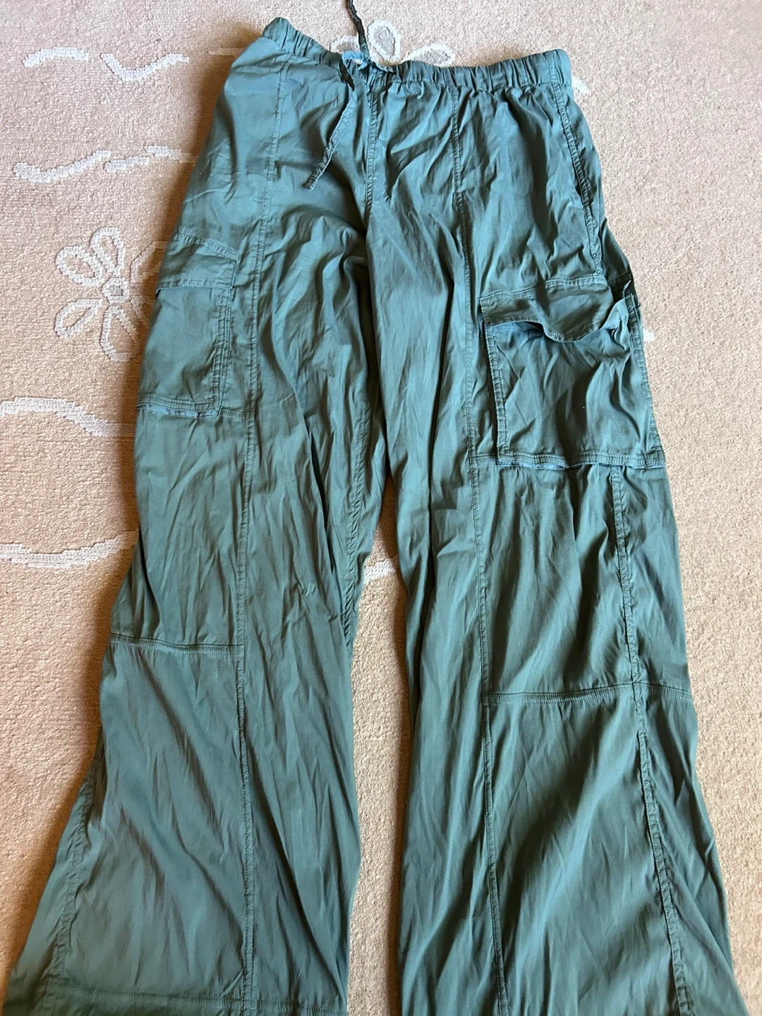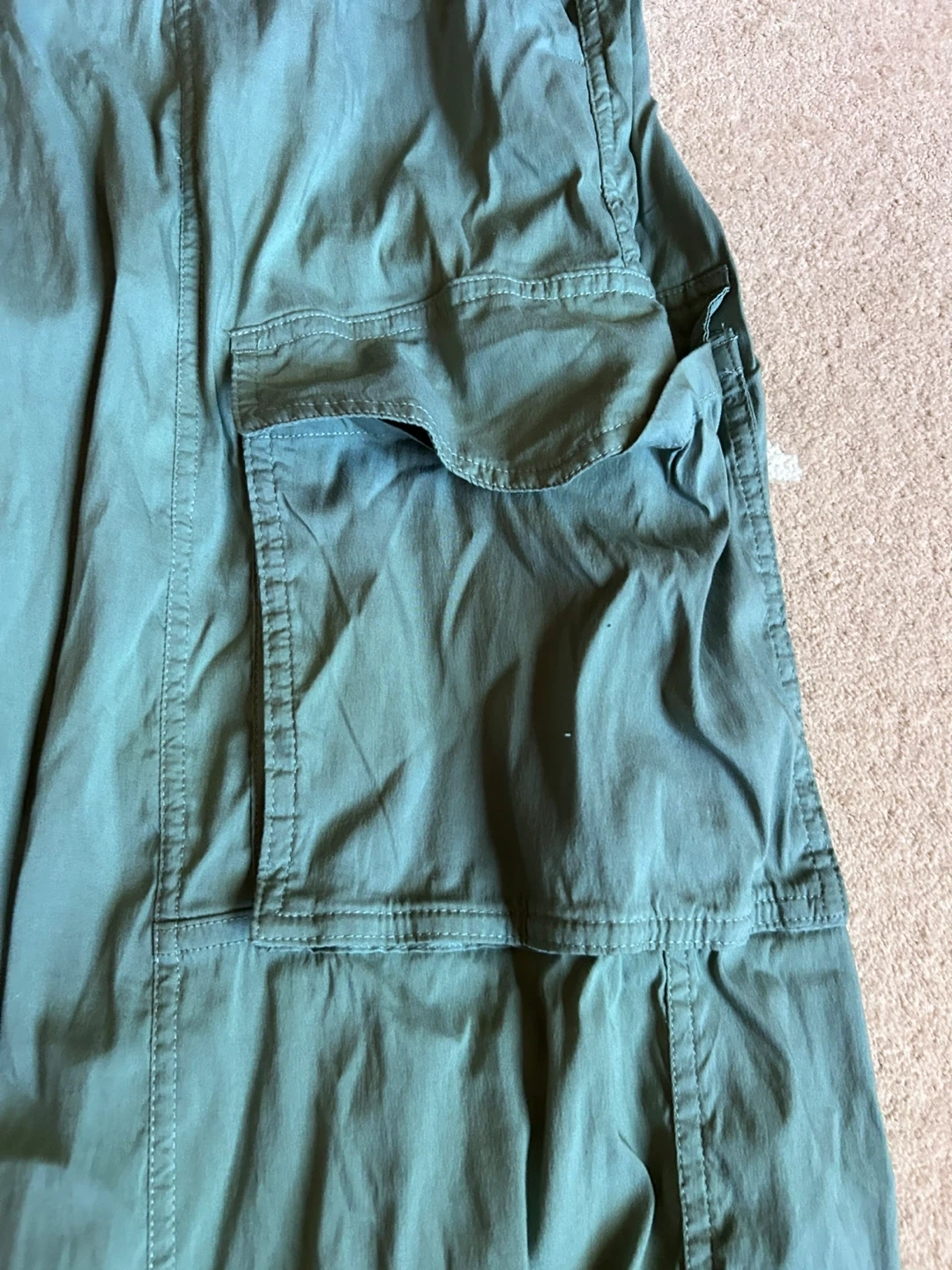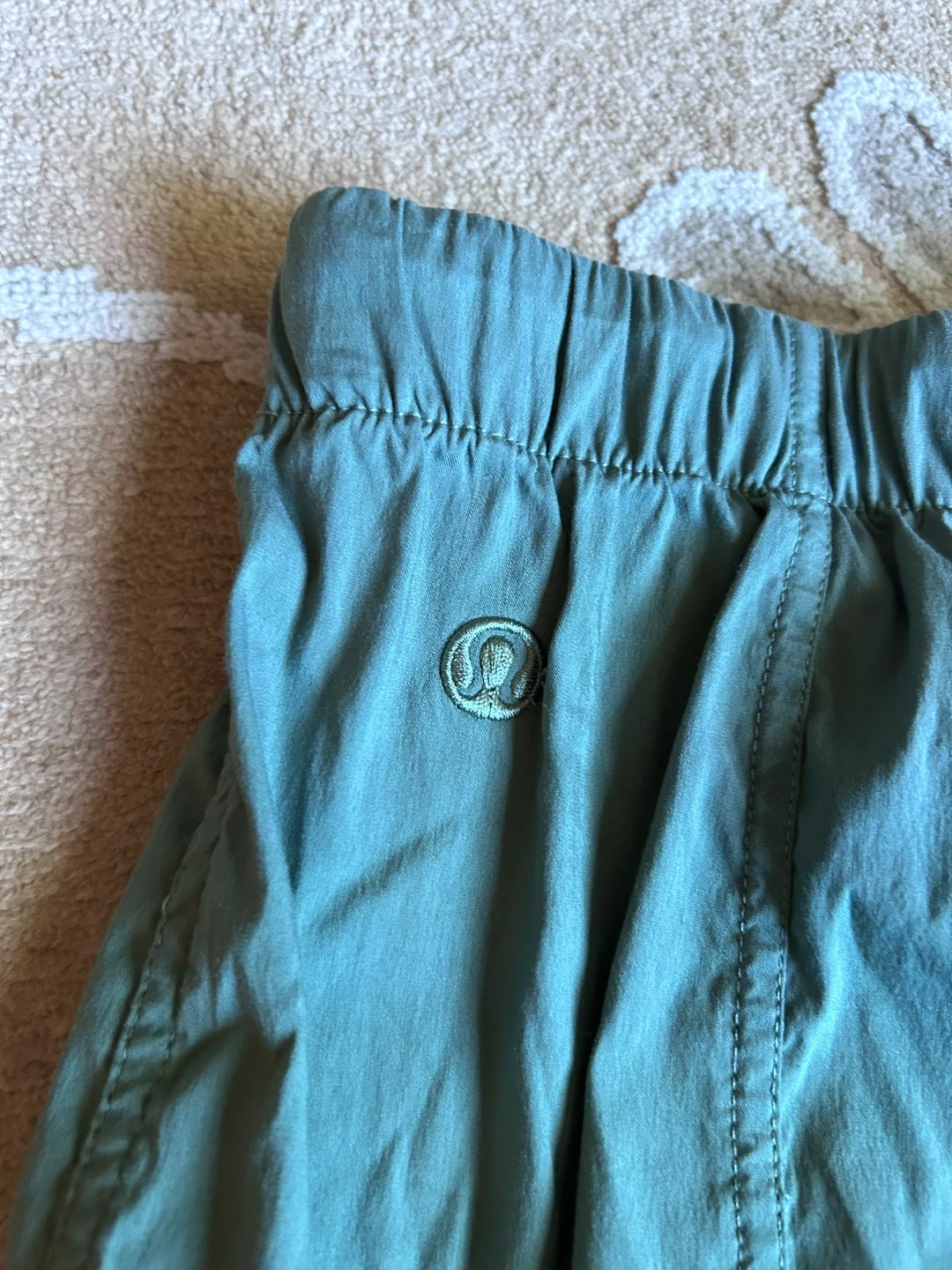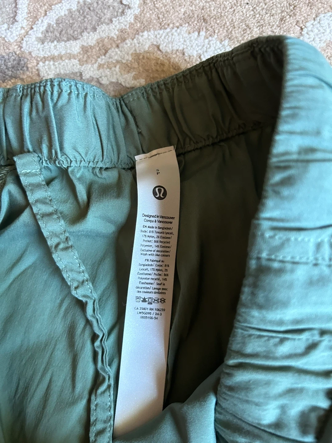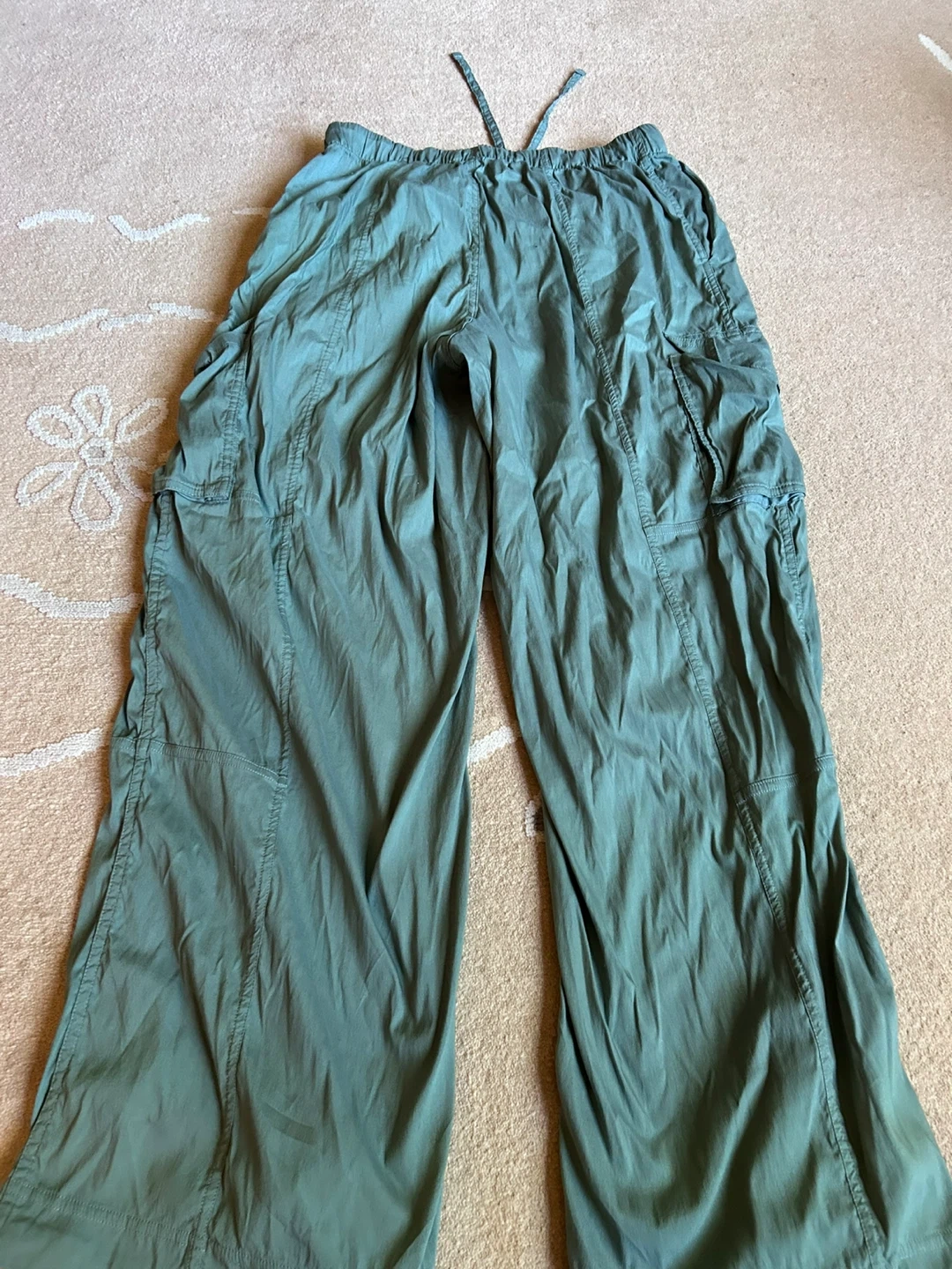 Comfy Lululemon cargo pants in a nice olive green colour! These are perfect for everyday wear. They have lots of pockets and a drawstring waist for a comfortable fit