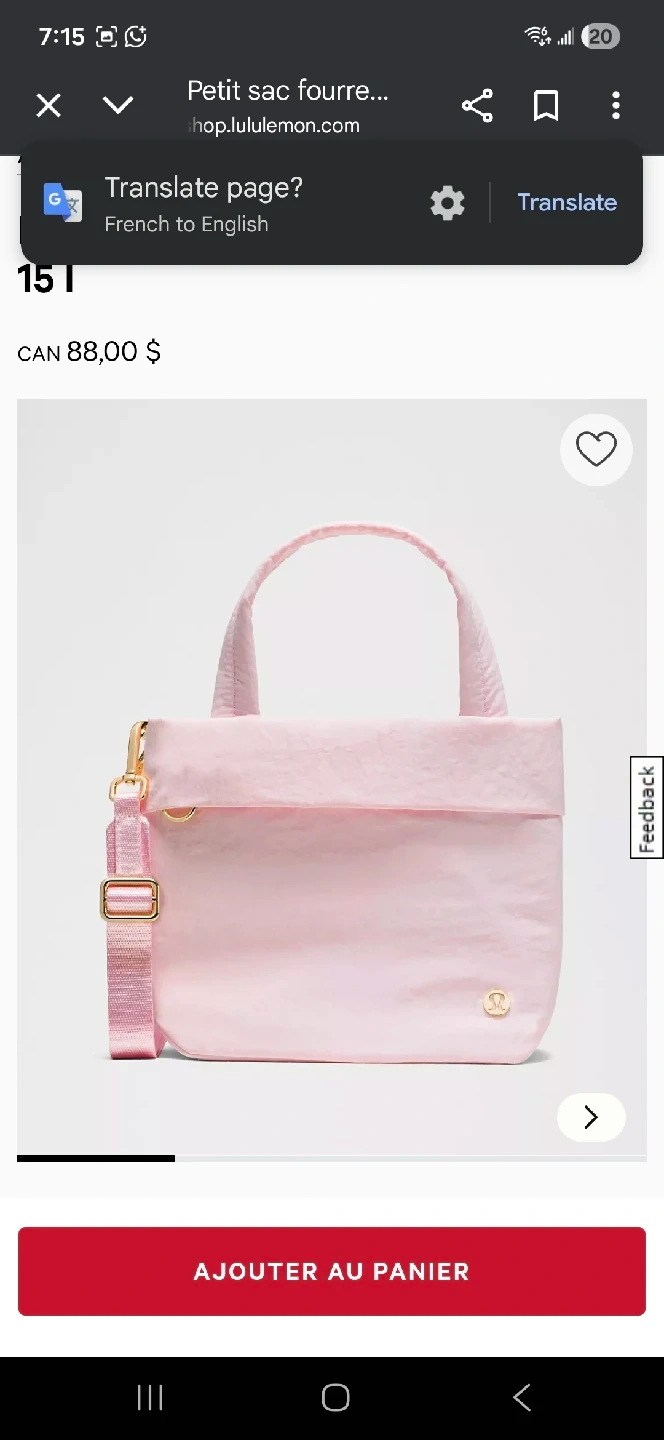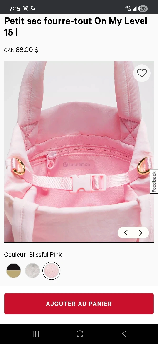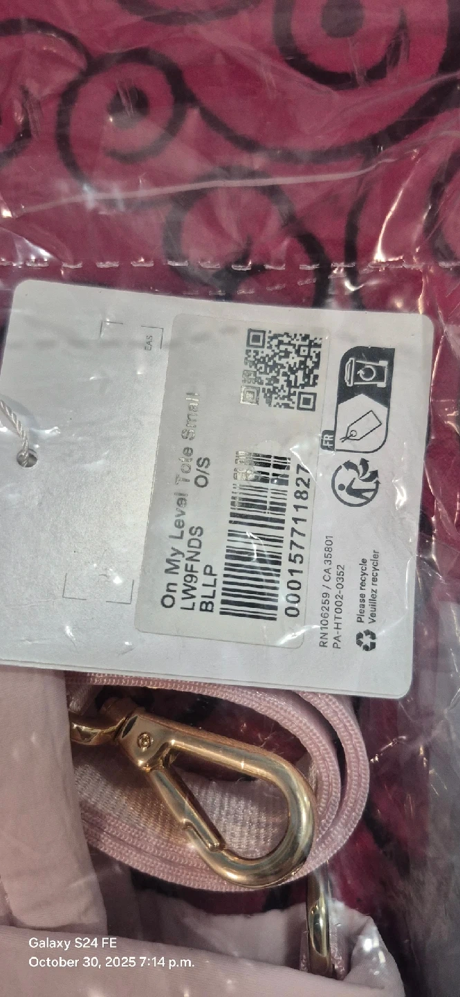 9This is a Lululemon On My Level Tote in the small size. It's a beautiful blissful pink colour and is in new condition, still in its original packaging! This tote is perfect for carrying your essentials in style. Originally bought for $88.00 CAD