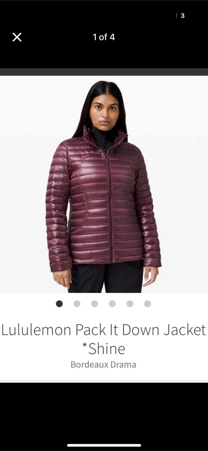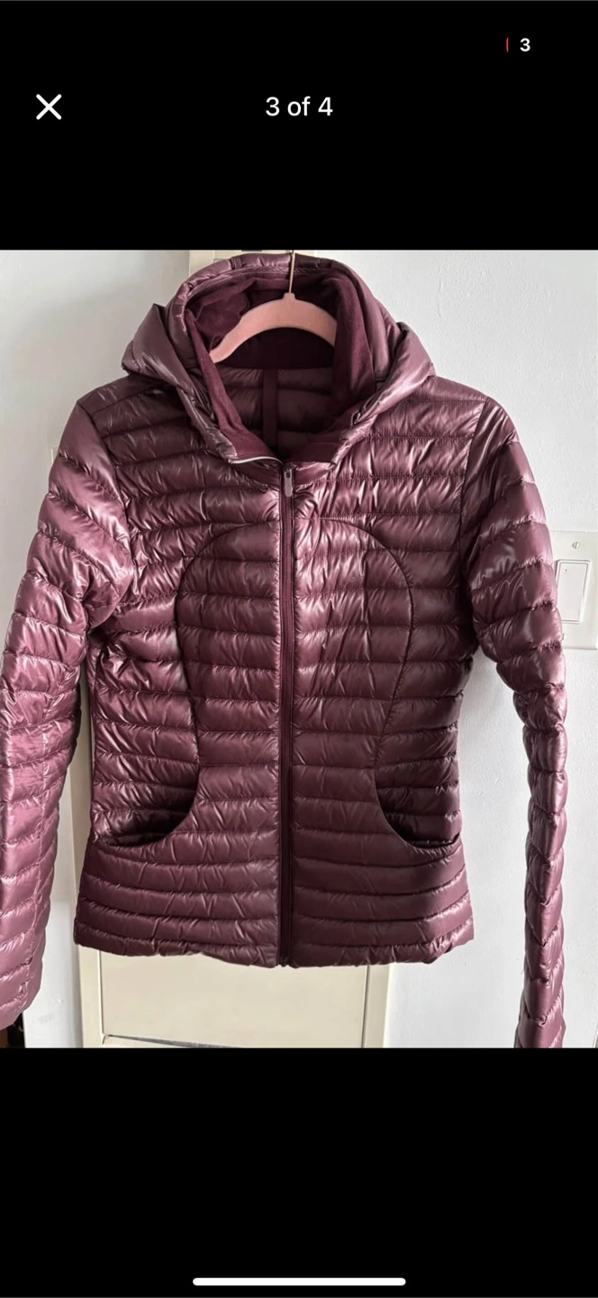 Selling a Lululemon Pack It Down Jacket in the *Shine Bordeaux Drama colour! It's in great condition and ready for a new home. This jacket is perfect for staying warm and stylish during cooler weather. It's lightweight and easy to pack, making it great for travel or everyday wear.