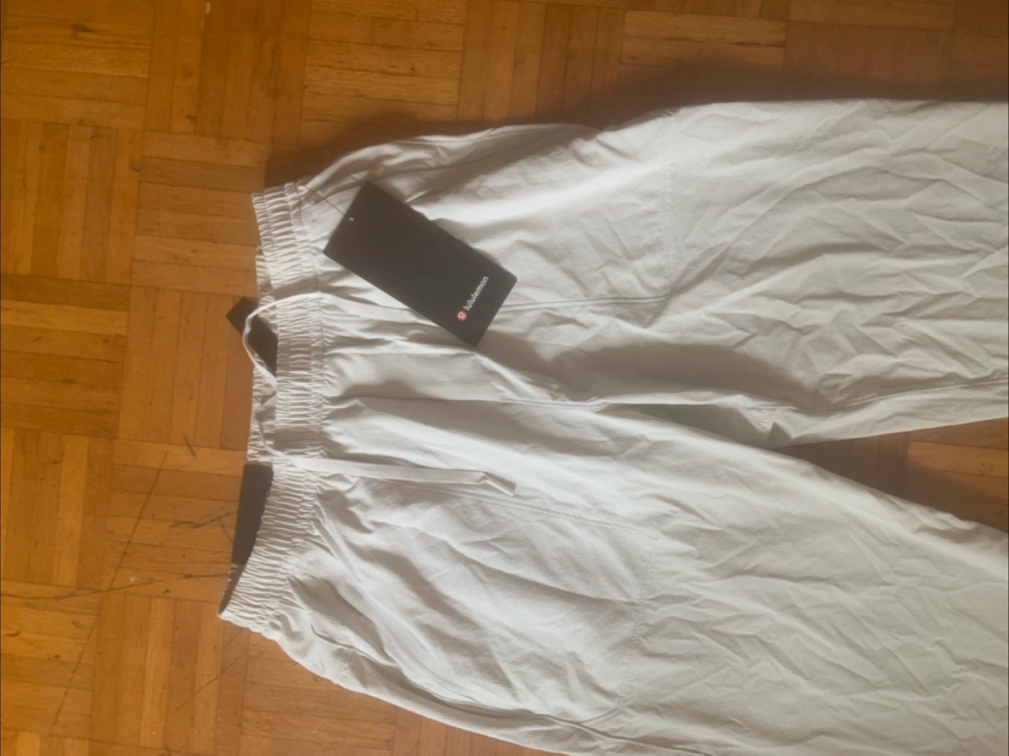Selling a pair of Lululemon Relaxed-Fit Pants in white, size small ". These pants are in brand new never worn great condition and ready for a new home! They offer a comfortable fit and are perfect for everyday wear.